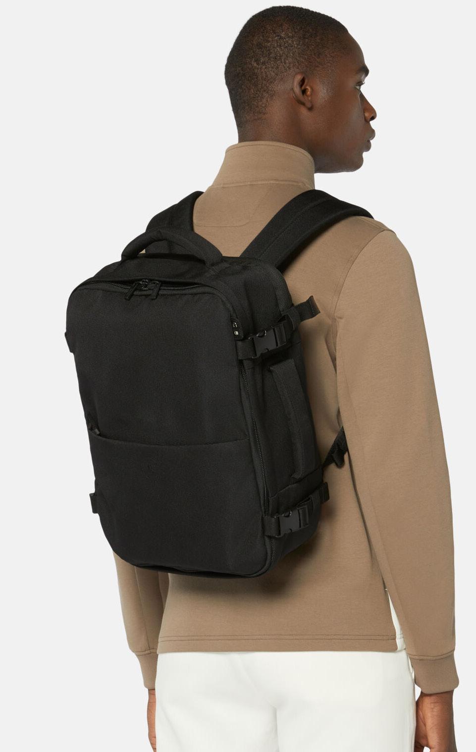 Mochila business para Laptop 14 y MacBook Pro 15 en material técnico reciclado y base en eco piel. Dotada de un espacio interior bien organizado con bolsillos de neopreno y de un compartimento independiente en la parte trasera para el portátil y la tableta.