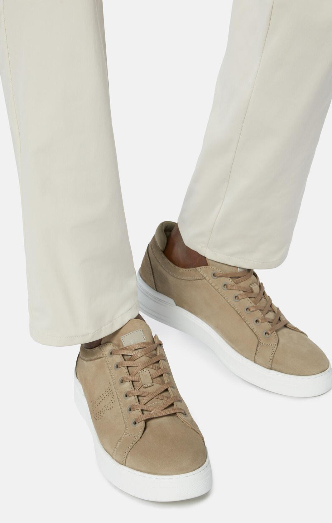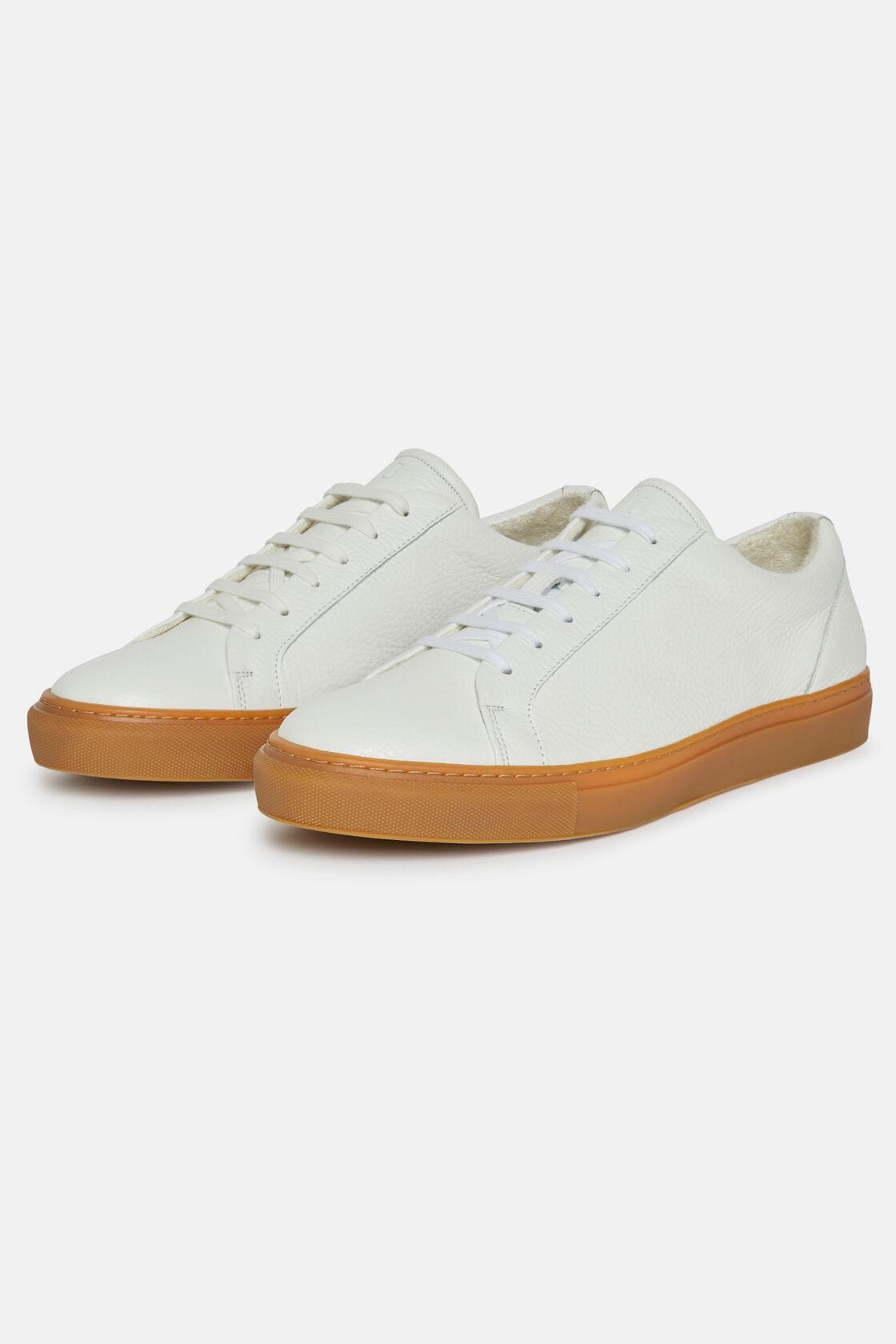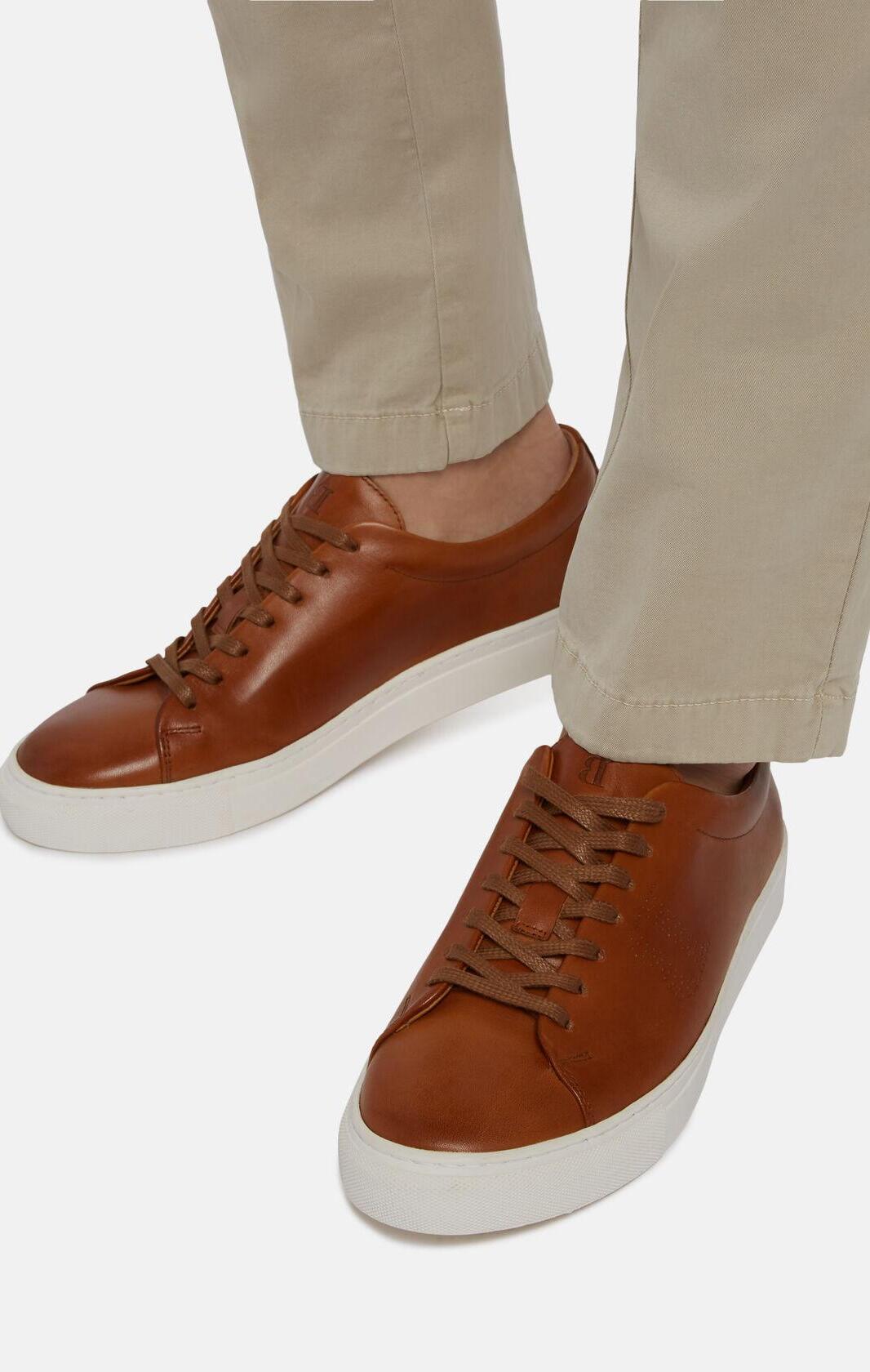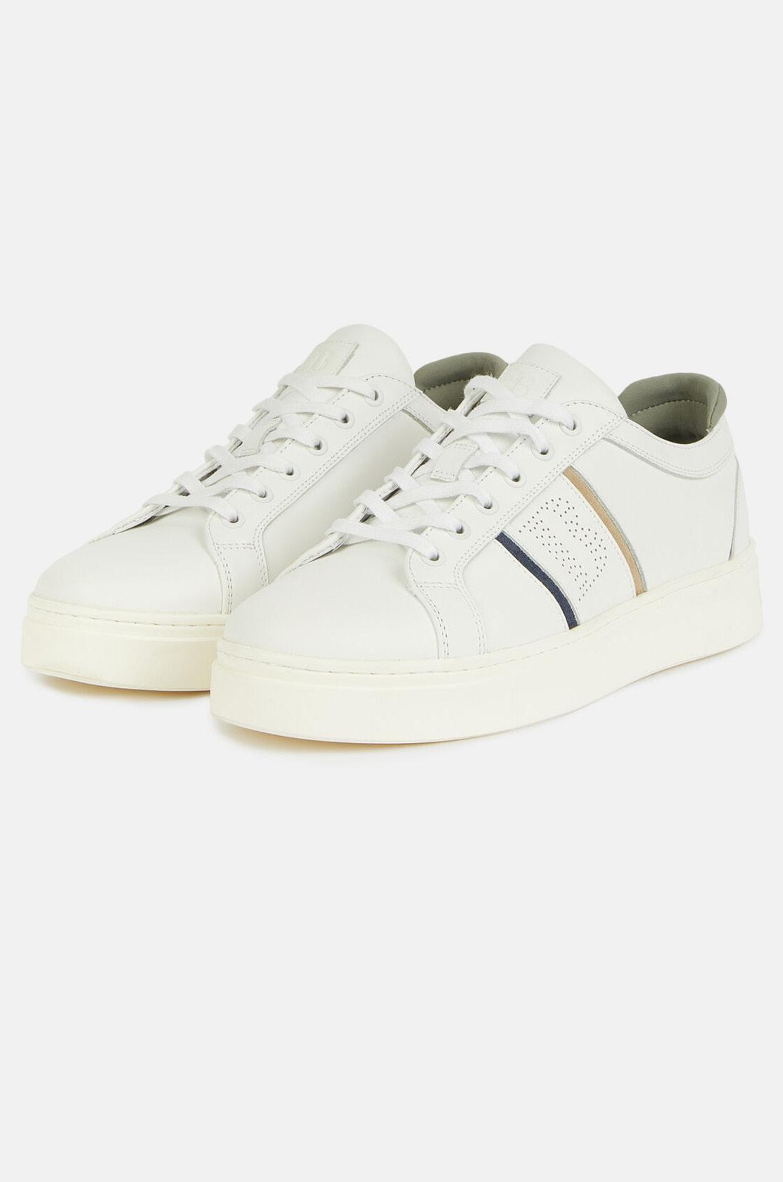 Zapatillas de piel con logo perforado en el lado exterior. Presentan detalle en contraste en el talón y piel de Ante en el mismo tono. Los cordones también son del mismo tono y la suela, al ser de EVA, resulta extremadamente ligera y cómoda.