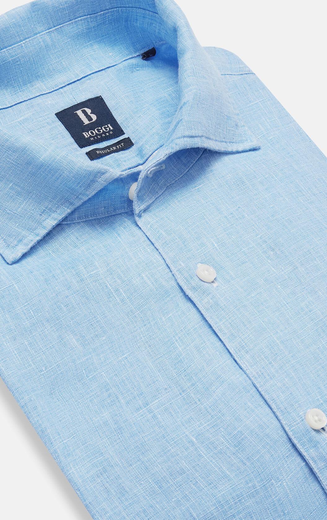 Camisa con cuello Windsor, ultimate non-iron. El tejido es un dobby de doble torsión. La particular confección y el acabado al que se somete la prenda garantizan resistencia a las arrugas y un cuidado extremadamente fácil.