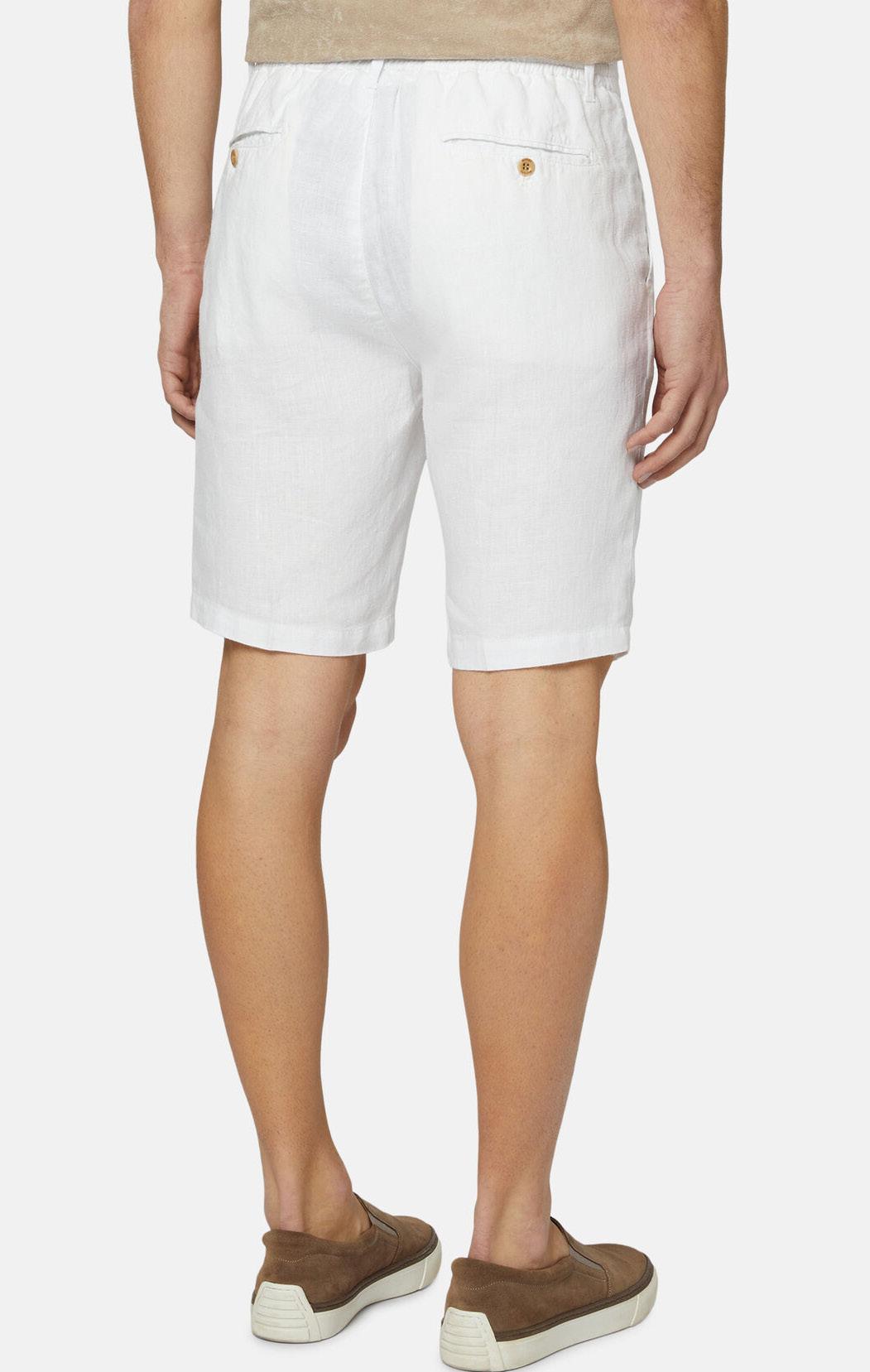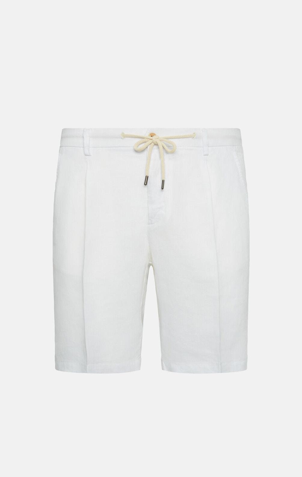 Bermudas de lino de un solo color. Cintura con cordón. Cierre con botones y cremallera, bolsillos diagonales delanteros y bolsillos traseros.
