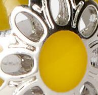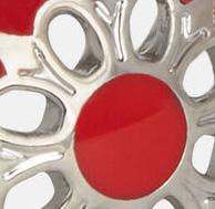 Gemelos de forma circular hechos de metal plateado, presentan un motivo floral esmaltado.