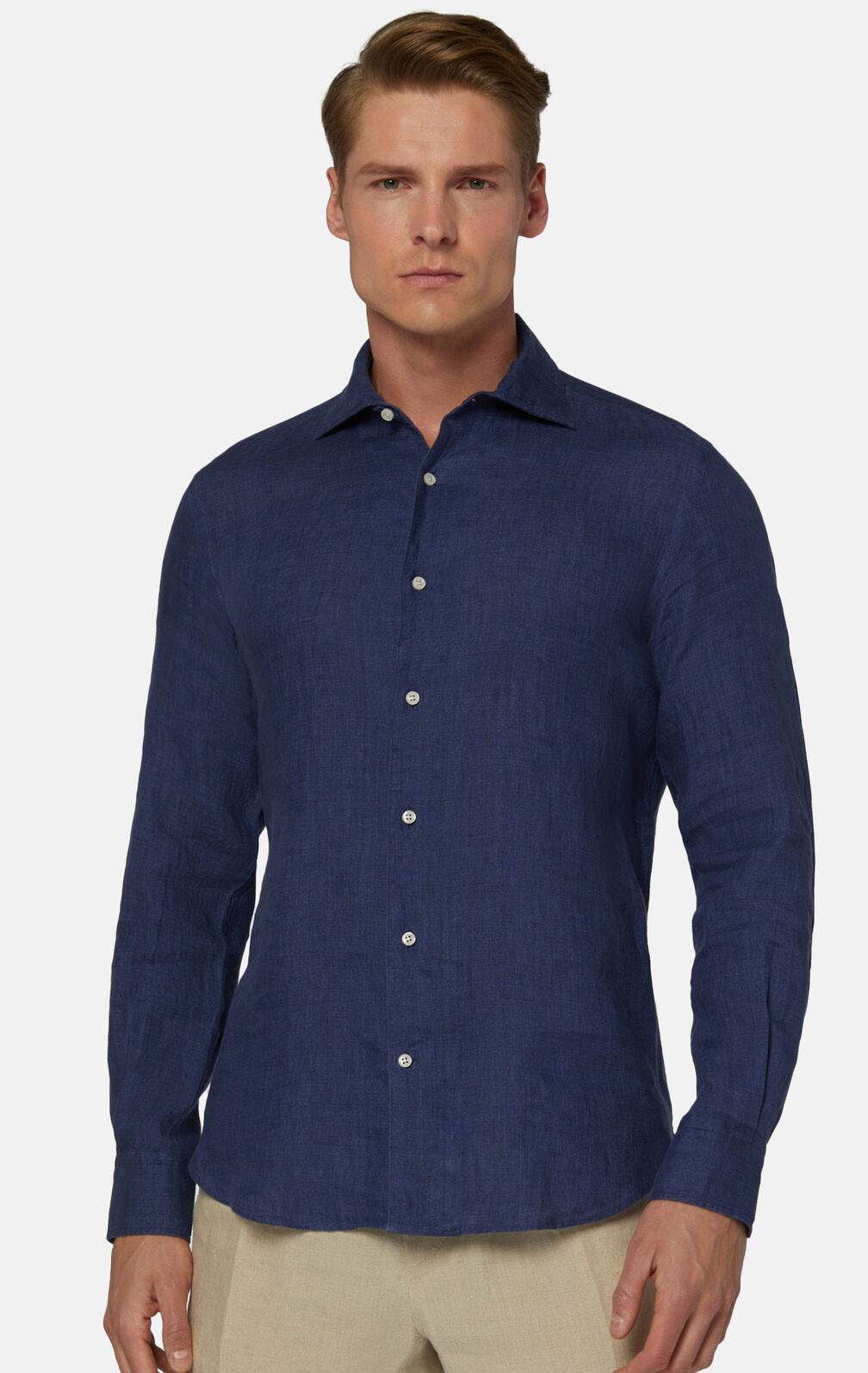 Camisa con cuello bowling. El lino con el que está confeccionada ha sido sometido a un tratamiento de lavado. El color puede variar ligeramente con cada lavado.