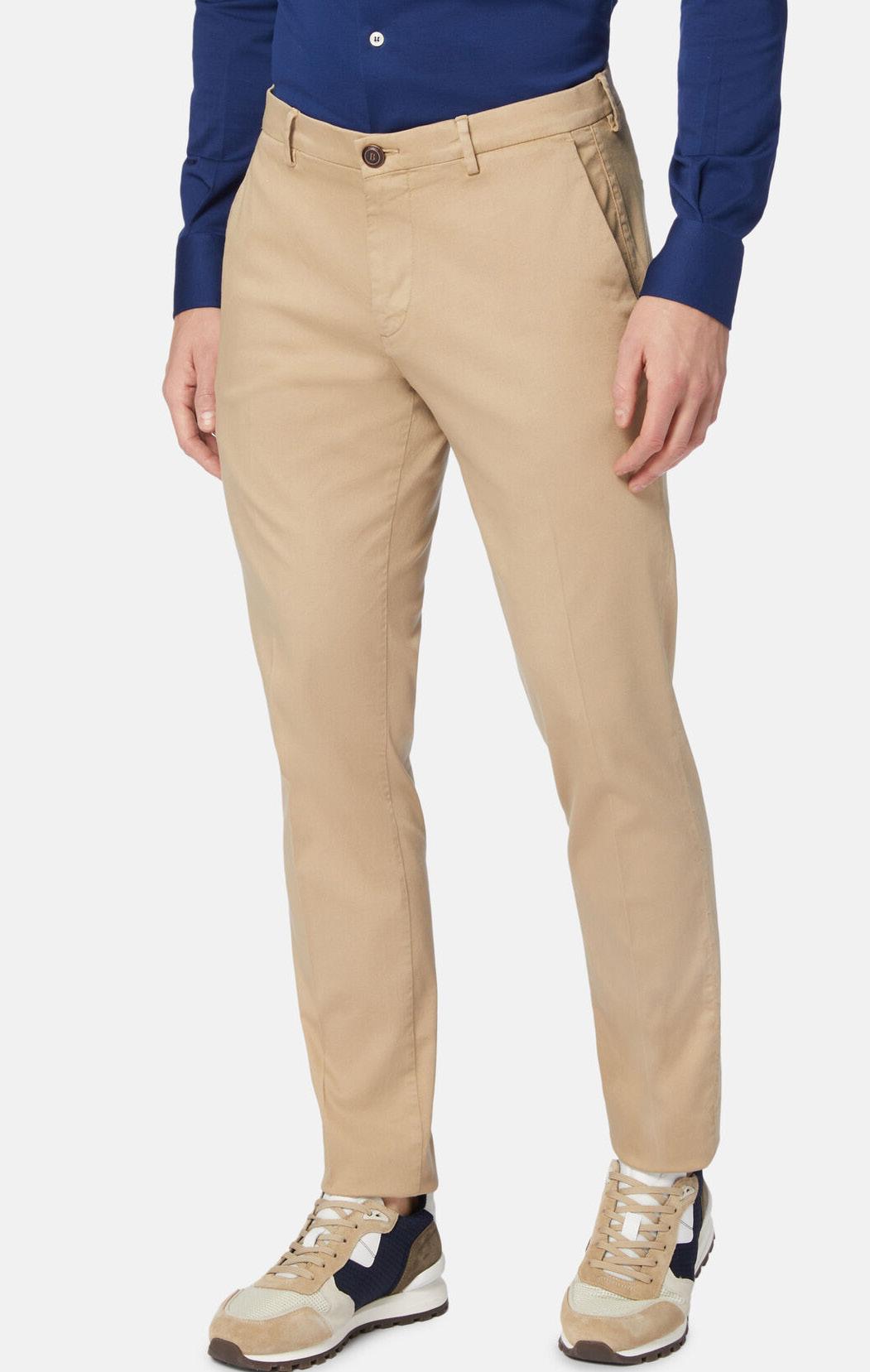 Pantalón de algodón y Tencel™ elástico teñido. El Tencel™ es una tela de origen natural de alta calidad y máximas prestaciones: delicada sobre la piel, transpirable y ligera.