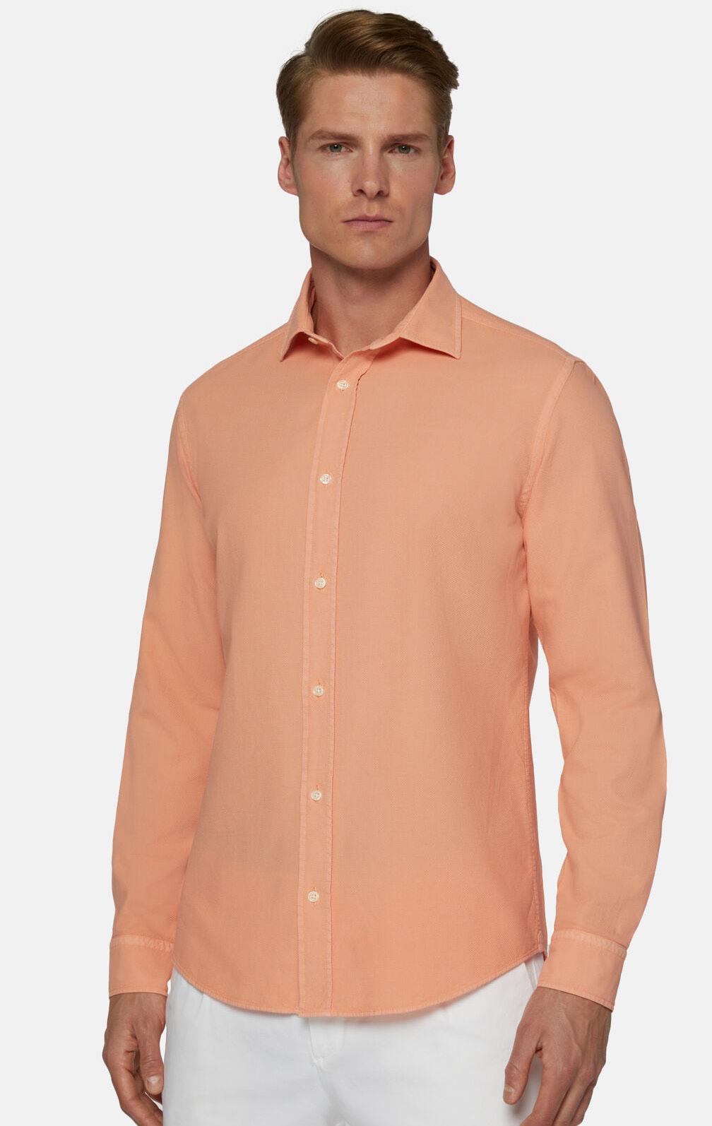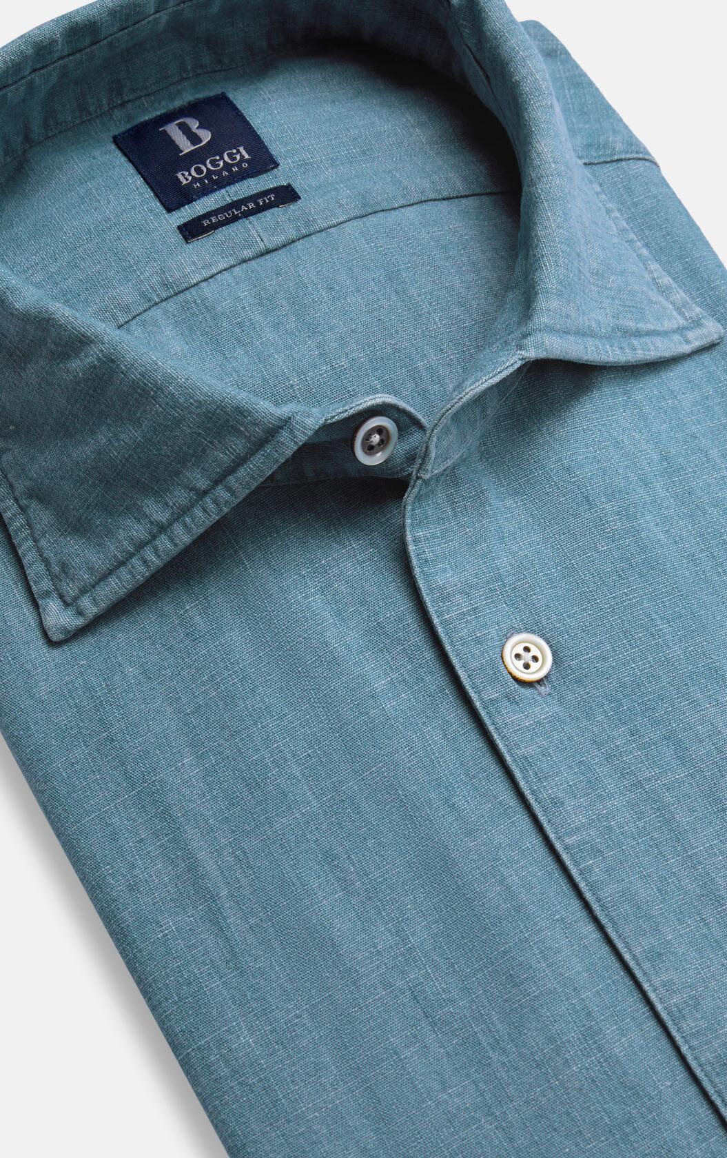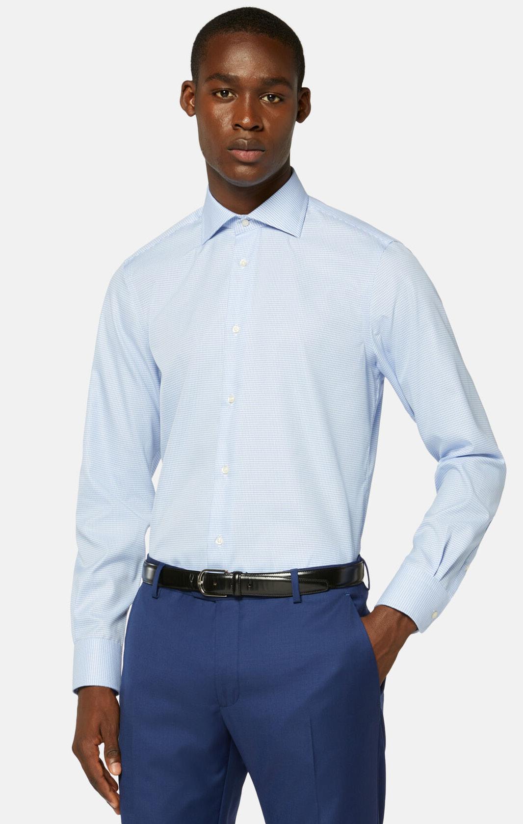 Camisa con cuello Nápoles, «ultimate non-iron». El tejido es un dobby de algodón de doble torsión. La particular confección y el acabado al que se somete la prenda garantizan resistencia a las arrugas y un cuidado extremadamente fácil.
