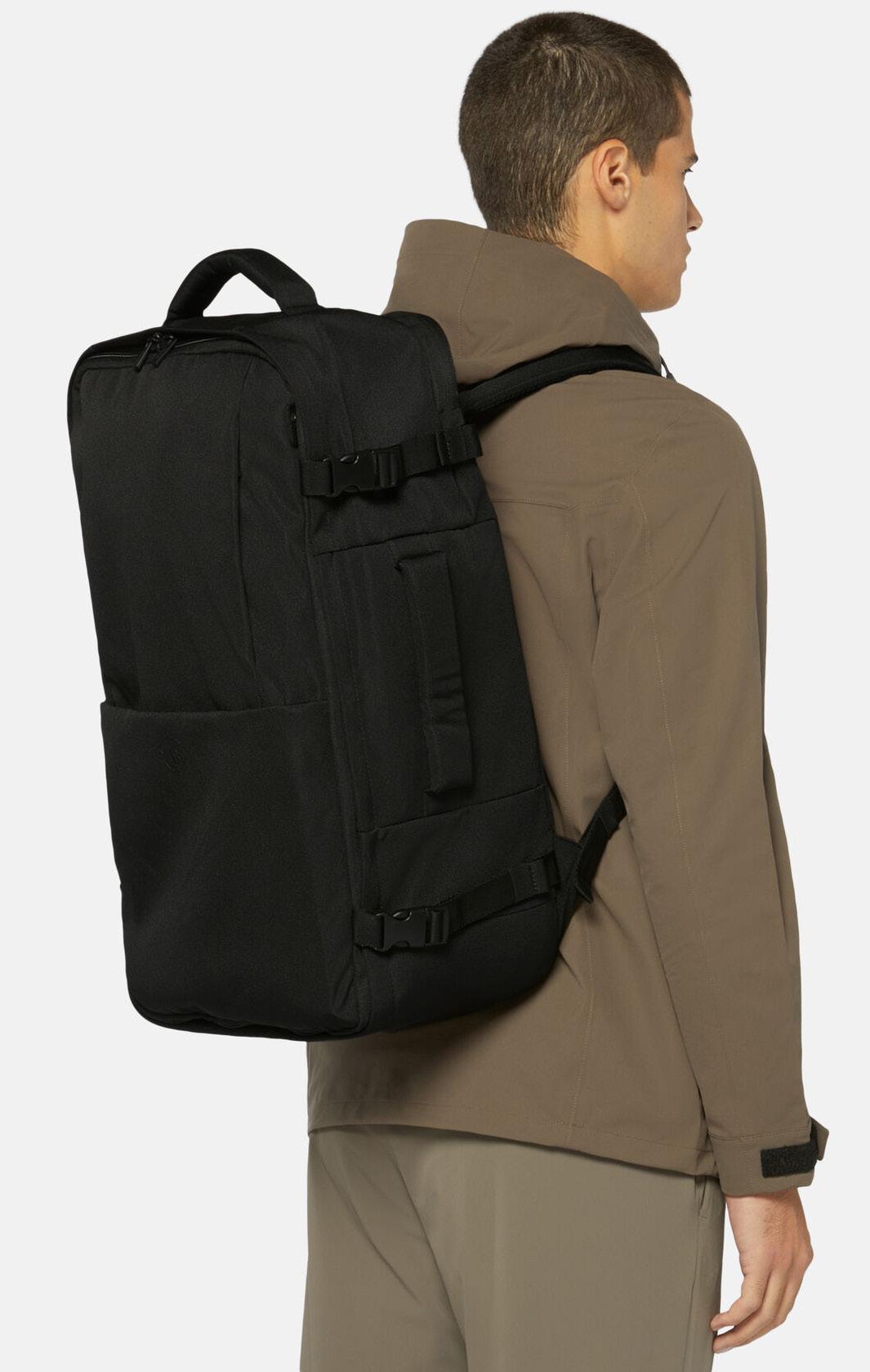 Resistente mochila diseñada para adaptarse a las dimensiones máximas permitidas por las aerolíneas para el equipaje de mano (IATA). Cargo L cuenta con dos cómodos bolsillos en la parte delantera, ideales para guardar tus accesorios de viaje, y un compartimento trasero acolchado, para que tu portátil de 17 o MacBook Pro de 16 está bien protegida.