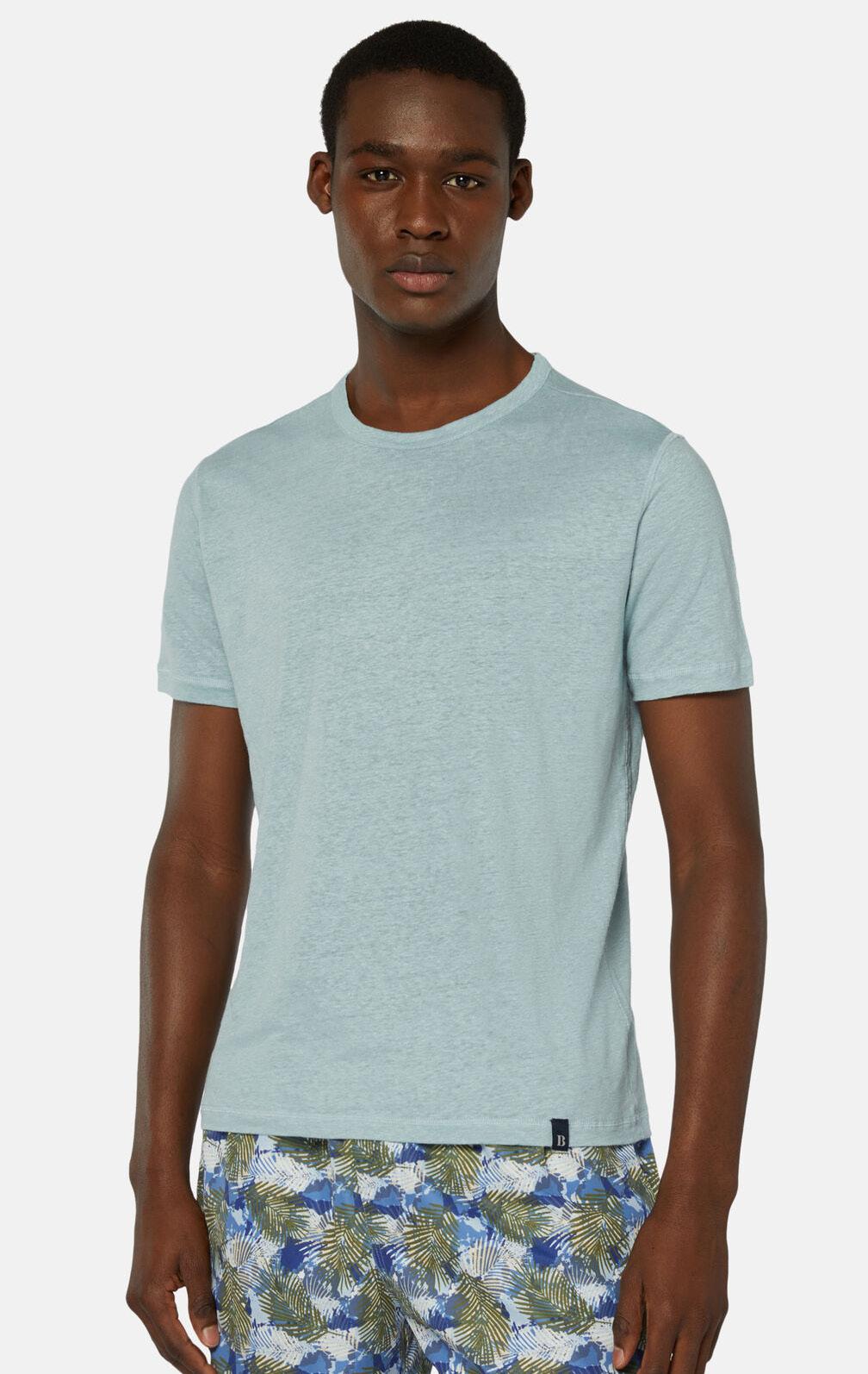 Camiseta de punto de lino elástico. El modelo presenta una B de Boggi en la parte inferior izquierda de la prenda.