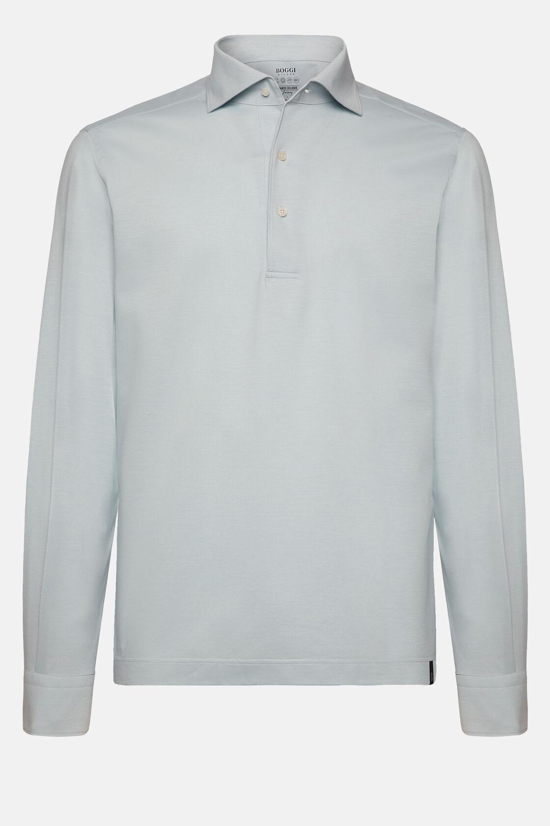 Camisa estilo polo con cuello bowling. Confeccionada en punto japonés de algodón y poliéster. La composición y la particular estructura del tejido garantizan una alta resistencia a las arrugas, máxima comodidad, alta transpirabilidad y fácil cuidado.