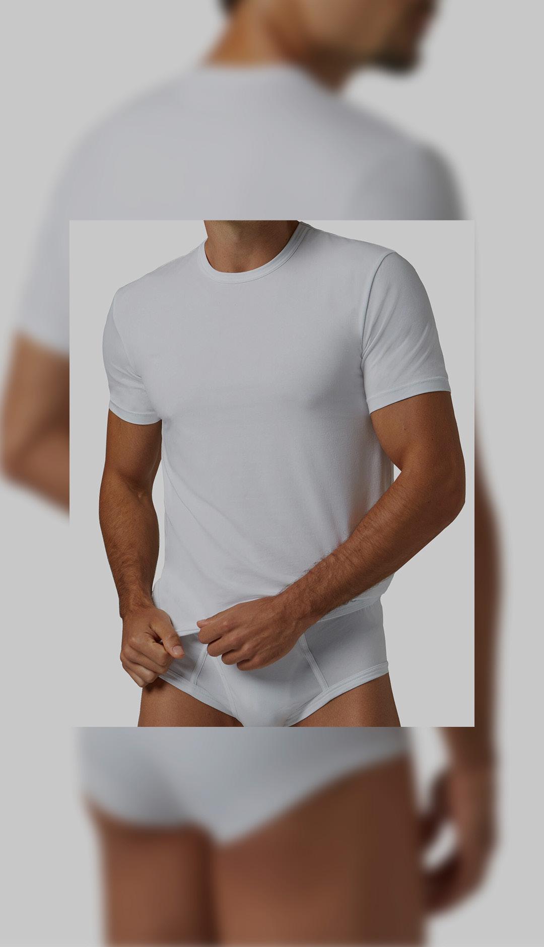Camiseta de cuello redondo, fabricada con punto de algodón elastificado.