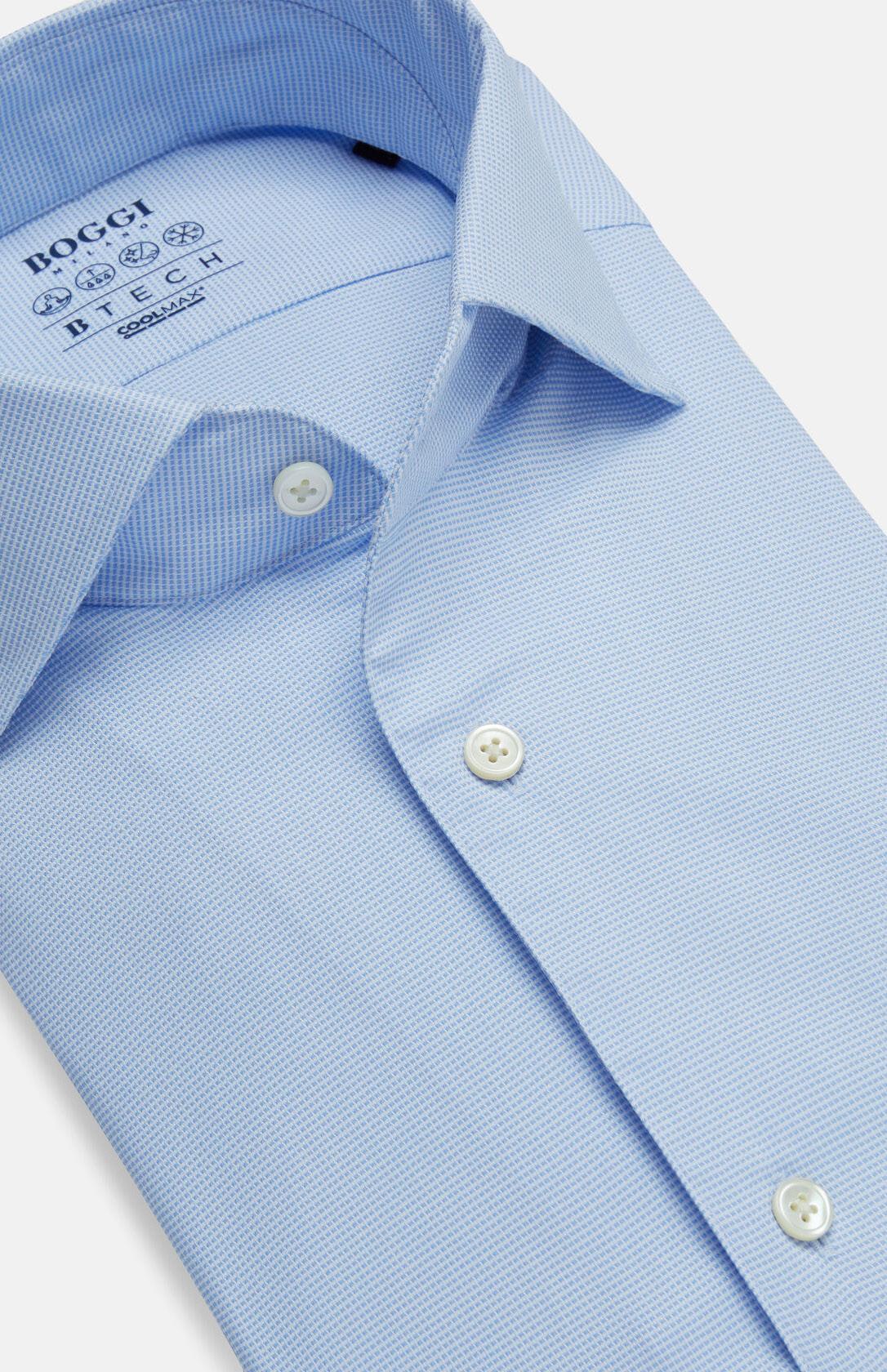 Camisa con cuello Capri de la línea B-Tech caracterizada por sus tejidos de vanguardia. Confeccionada en dobby de algodón y poliéster COOLMAX®, una fibra especial que garantiza al tejido una alta elasticidad, ligereza, transpirabilidad, resistencia a las arrugas y secado rápido.
