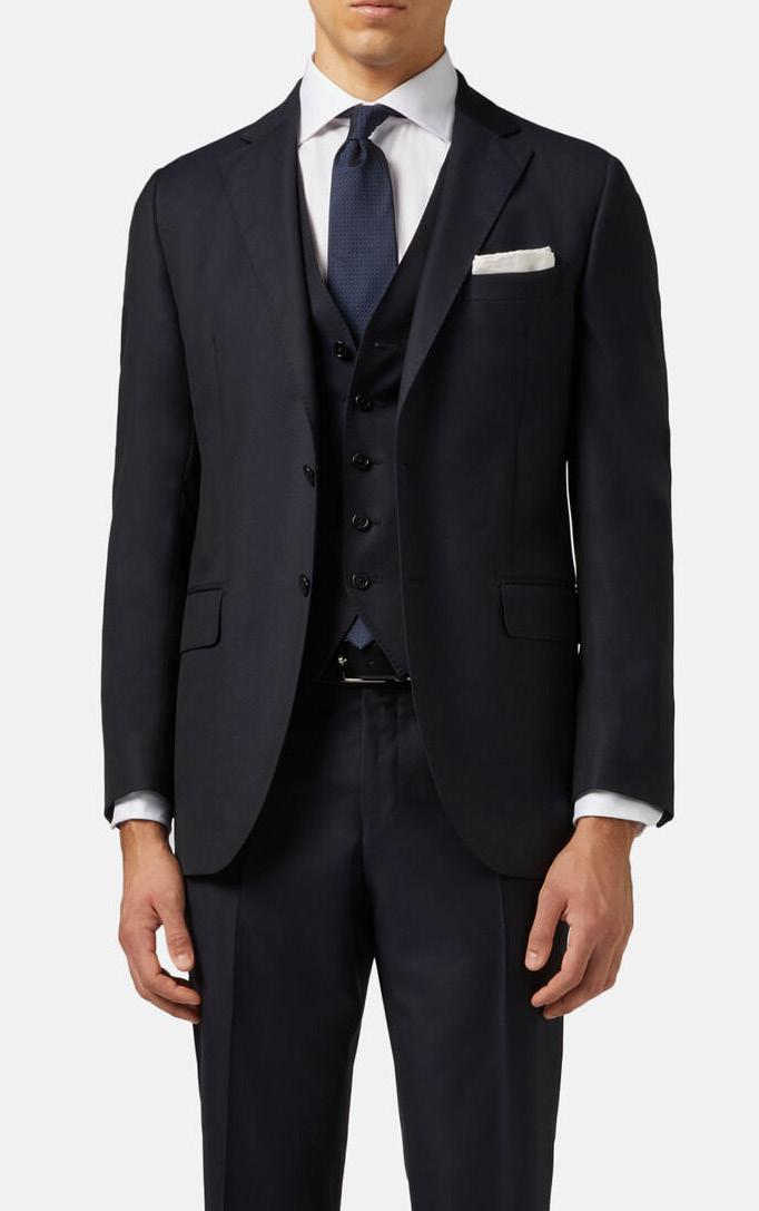 Traje color liso. Confeccionado en pura lana. Detalles interiores lujosos. Made in Italia.