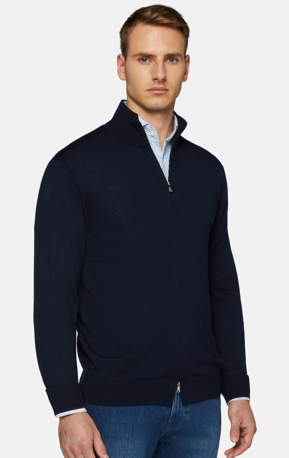 Cárdigan con cremallera integral de la colección B939. Tela de pura lana merina superfina.
