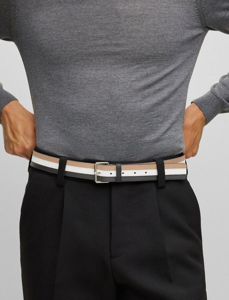 Una correa de piel de Boss. Buscamos continuamente formas más responsables de producir y acabar nuestros productos. Si quiere lograr un ajuste impecable, recomendamos pedir un cinturón de una talla superior a la de su cintura.