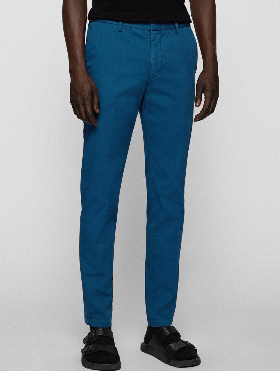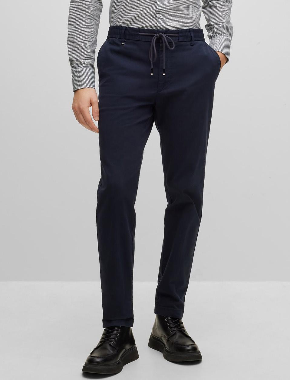 Unos modernos pantalones slim fit. Estos pantalones con forro con logo estampado en el interior se han elaborado en tejido de sarga para lucir un look exclusivo, están confeccionados en sarga de lana virgen para combinar con los sacos y chalecos a juego. En nuestros productos RESPONSIBLE siempre utilizamos como mínimo un 60 % de materias primas más sostenibles. Esta prenda está fabricada con un mínimo del 60 % de lana de origen responsable y certificada. En HUGO BOSS, el uso de lana responsable significa que se cumplen las normas de las cinco libertades del bienestar animal.