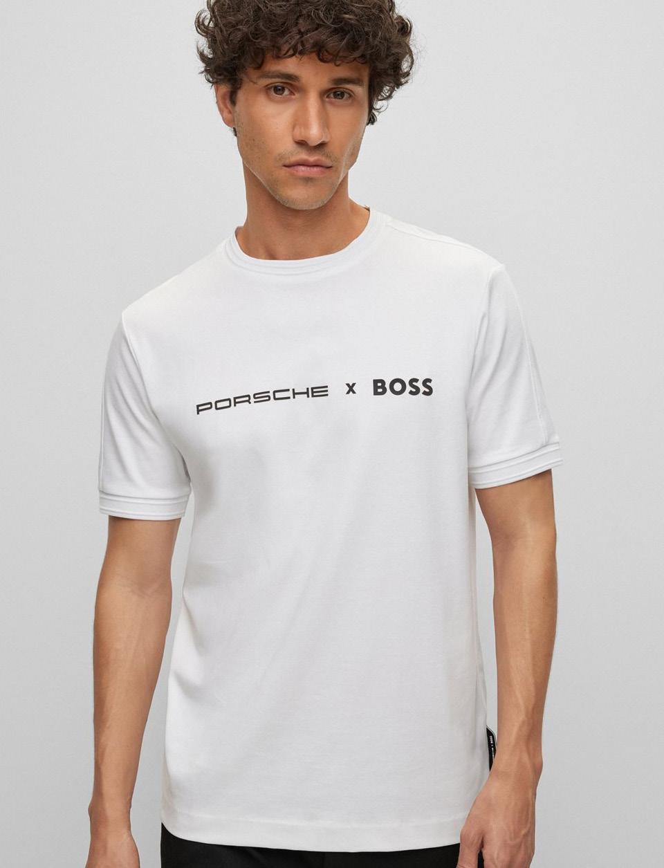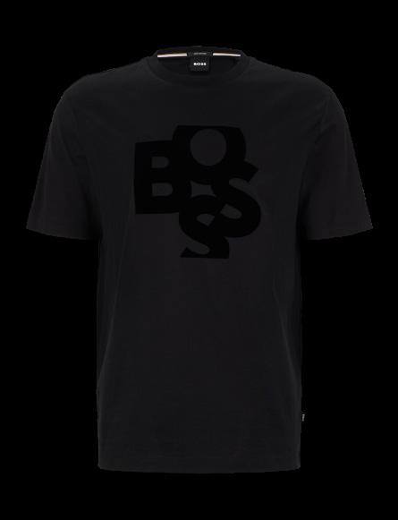 Una camiseta de manga corta. Esta camiseta regular fit está elaborada en algodón elástico de gran comodidad y presenta un colorido diseño con logos BOSS estampados en el pecho. Los ribetes en contraste añaden un acabado deportivo a la prenda.