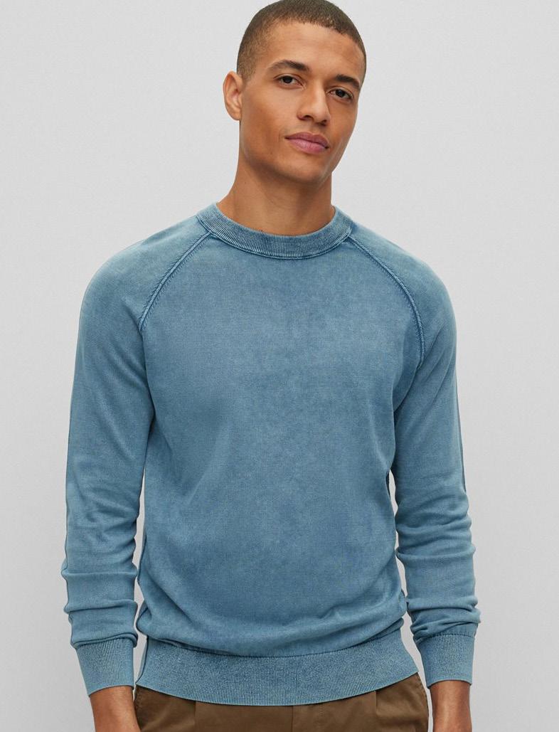 Una chompa regular fit que es ideal para vestir a capas y está elaborada en puro algodón con una técnica de tinción especial que le aporta personalidad. Incluye detalles de la marca como una raya naranja en el interior del cuello.