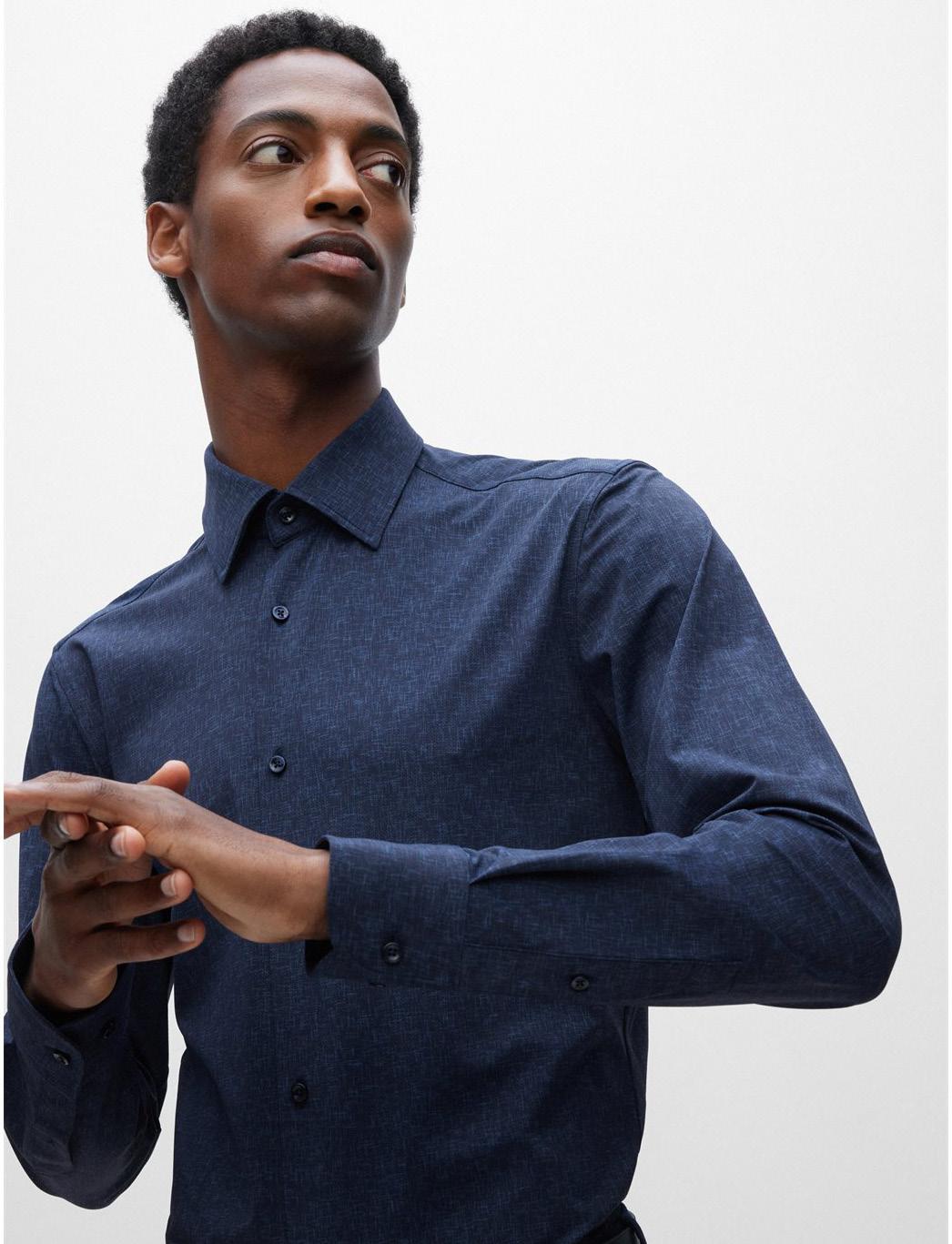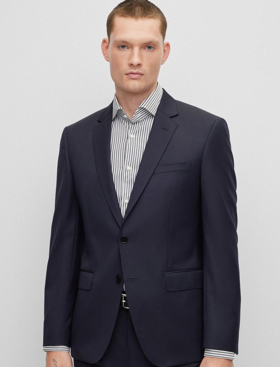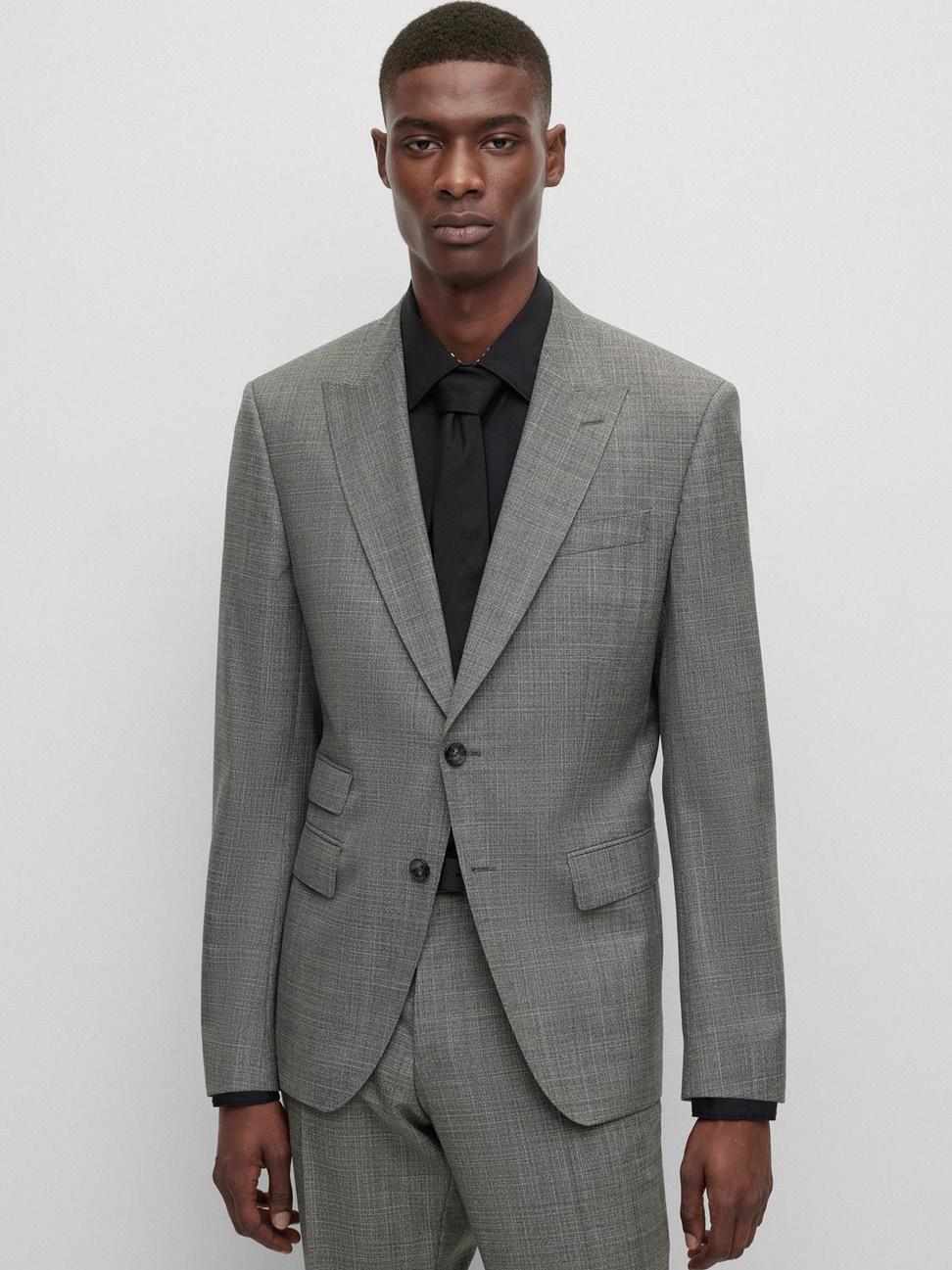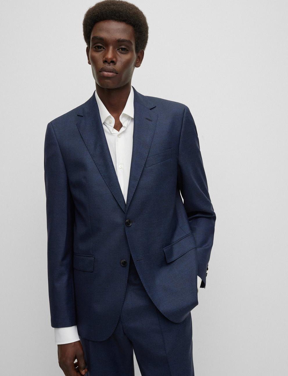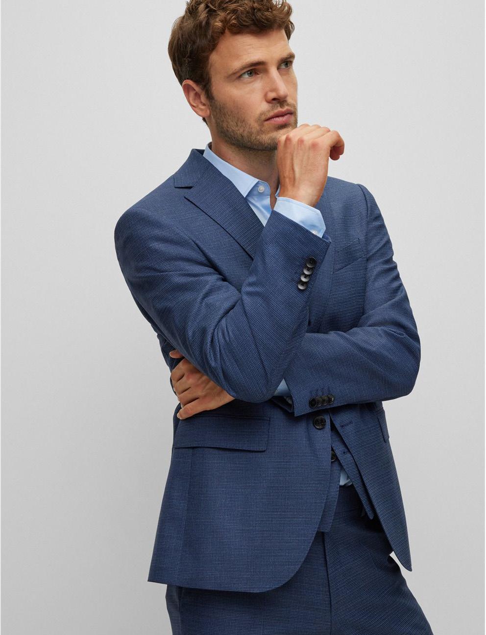 Un exquisito traje Boss. Este versátil traje fit slim con estampado se ha elaborado en mezcla de lana virgen con elástico para facilitar el movimiento. El tejido presenta un micro motivo que permite adaptarlo a diversos estilos y ocasiones.