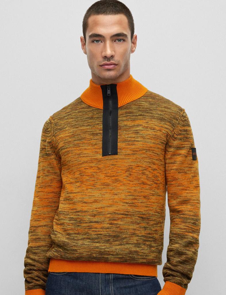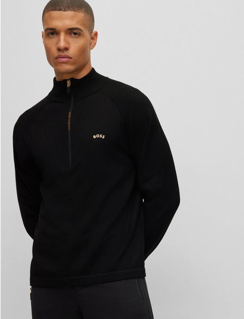 Mezclada con lana virgen para ofrecer un tacto suave, esta chompa tiene un detalle de la colaboración en la tapeta de la cremallera, en la parte izquierda del pecho y en la espalda para lucir un estilo que marca tendencia. El tejido con el que se ha confeccionado esta prenda Boss forma parte de la cápsula exclusiva creada en colaboración con el boxeador Anthony Joshua.