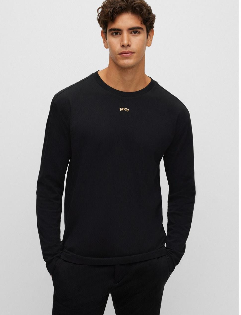 Una camisa de punto con alto contenido de algodón y propiedades de absorción de la humedad. Esta camisa de manga larga y luce un logo Boss curvado en la parte izquierda del pecho que le aporta un toque de la marca. Las costuras en contraste completan esta moderna prenda.