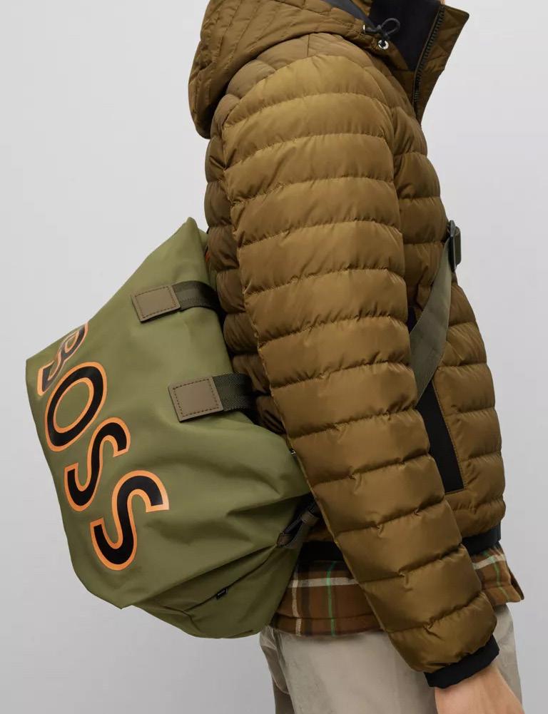 Esta mochila ligera incluye un logo Boss curvado con efecto metalizado en el bolsillo. Este accesorio se ha fabricado con un mínimo del 60 % de poliamida reciclada certificada. Utilizamos poliamida reciclada porque queremos ahorrar recursos aprovechando materiales plásticos ya existentes, el nylon reciclado se fabrica normalmente con hilado de desecho industrial o restos de tejidos, pero también puede provenir de redes de pesca industrial post consumo.