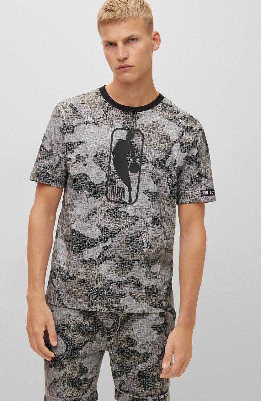Una camiseta Boss de corte relax fit. Esta camiseta de manga corta incluye un detalle de la colaboración Boss & NBA en el pecho y en la manga izquierda, y está elaborada en punto de algodón de comodidad natural, el estampado de camuflaje inspirado en la textura de una pelota de baloncesto aporta energía y frescura a esta prenda. Una pieza casual de edición limitada y diseño moderno que forma parte de la colección en colaboración con la NBA.
