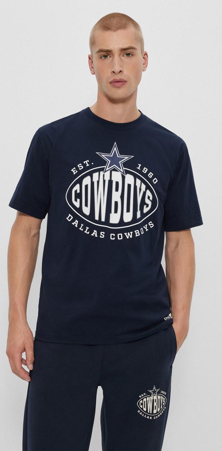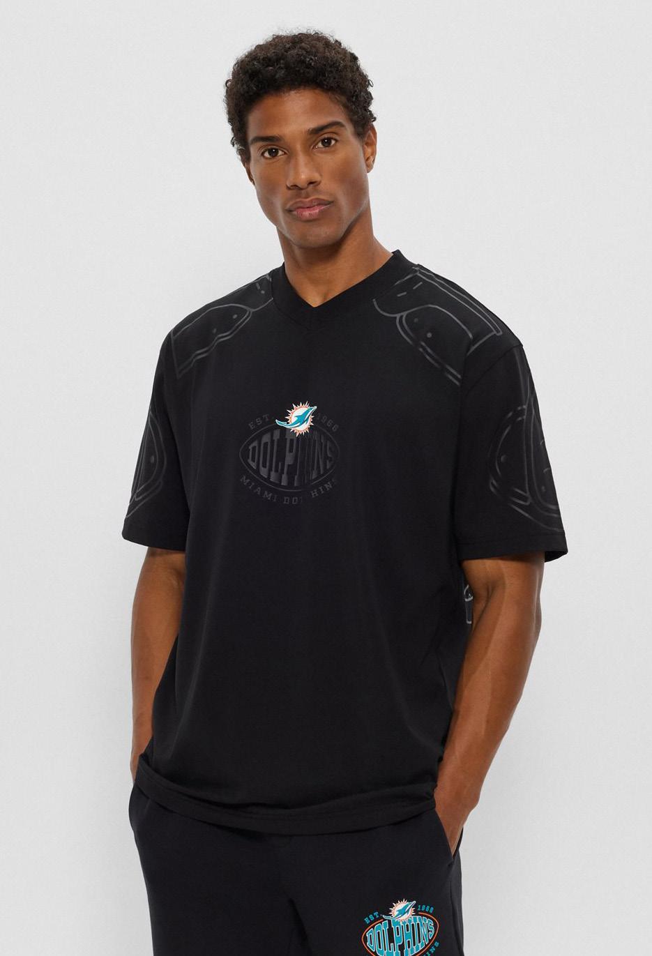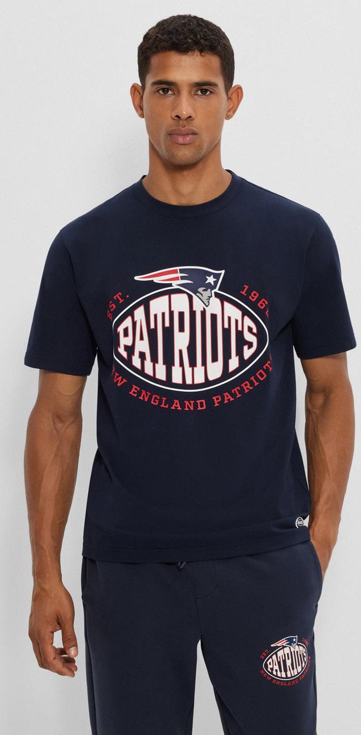Polo oversize fit BOSS x NFL con detalle de la colaboración.