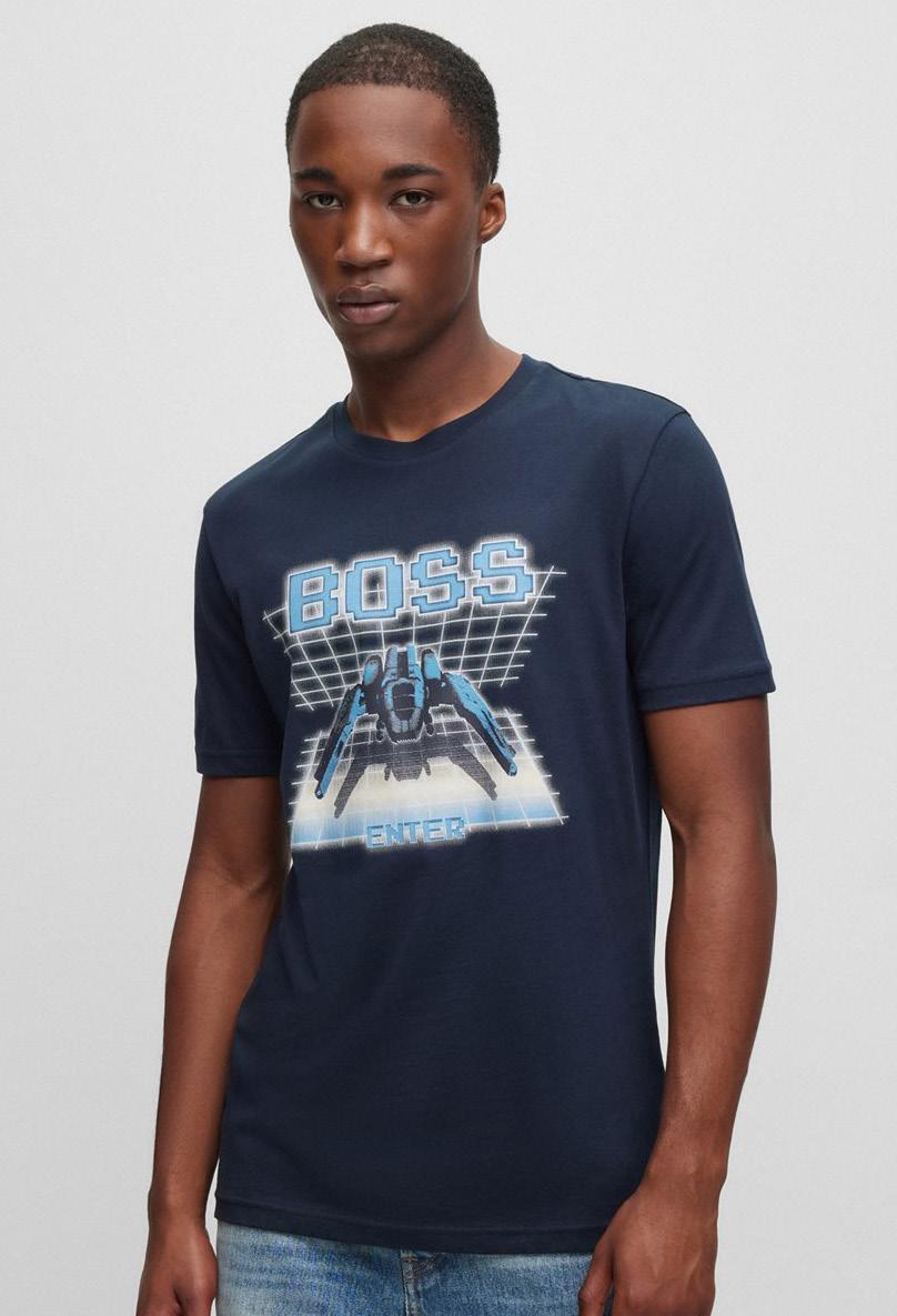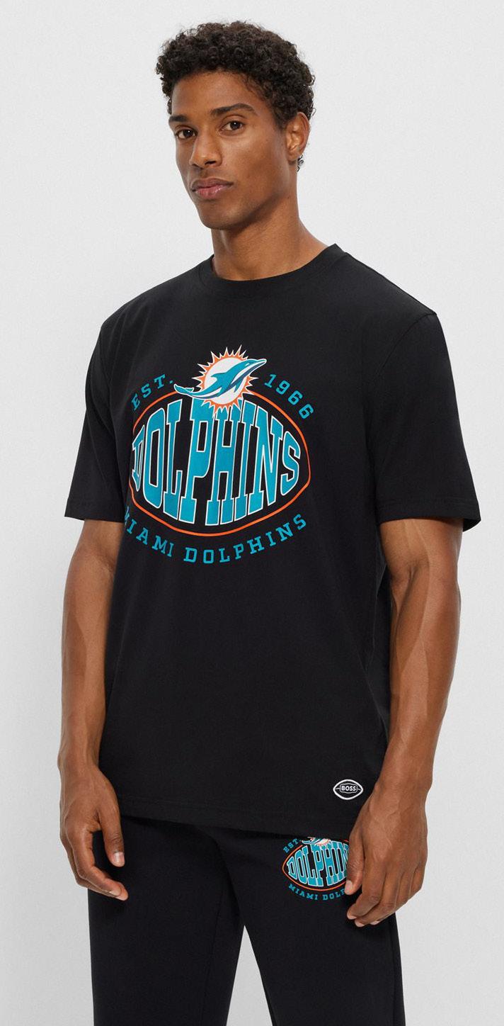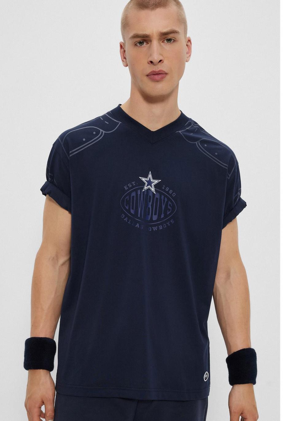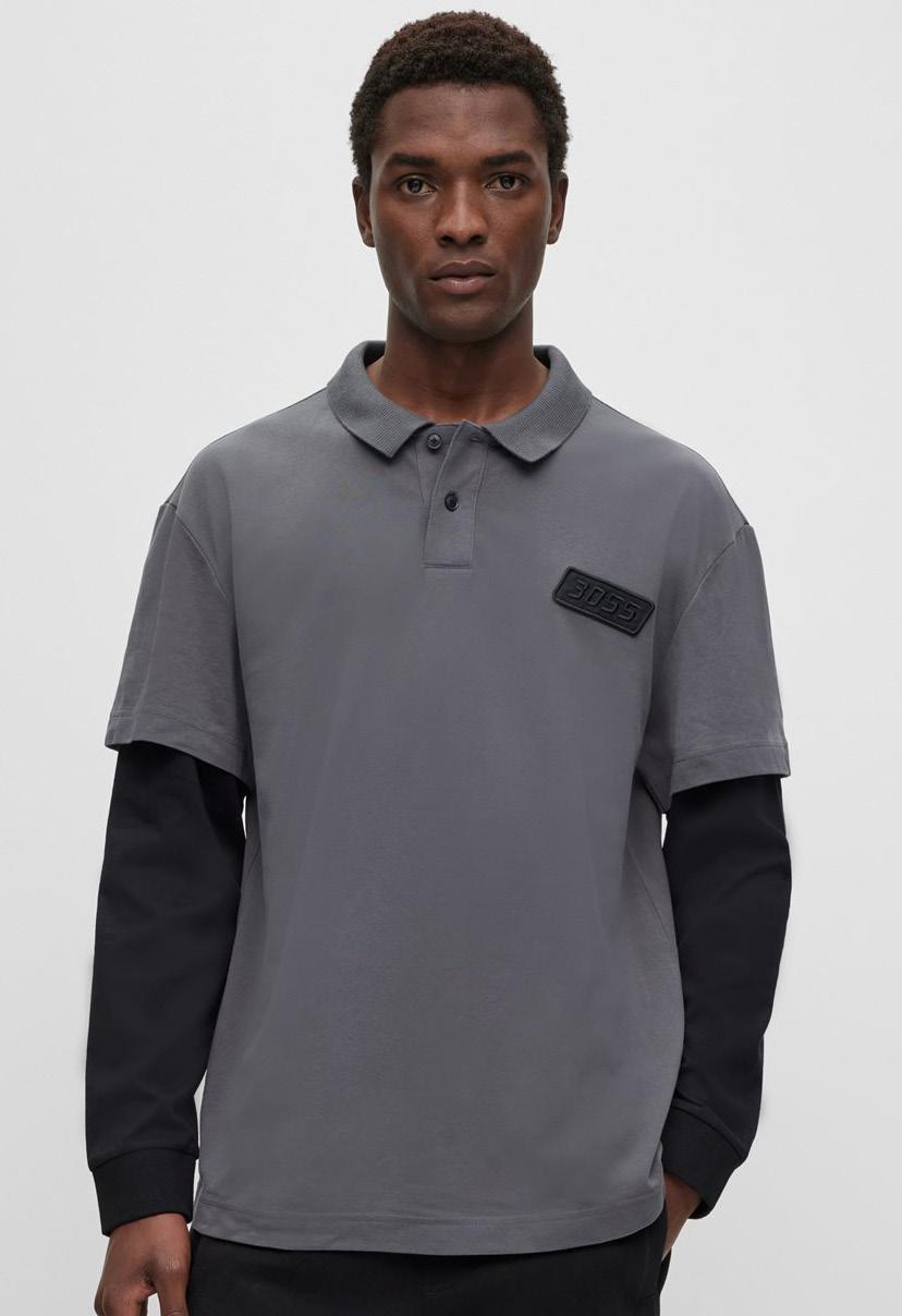 Polo oversize fit BOSS x NFL con detalle de la colaboración.