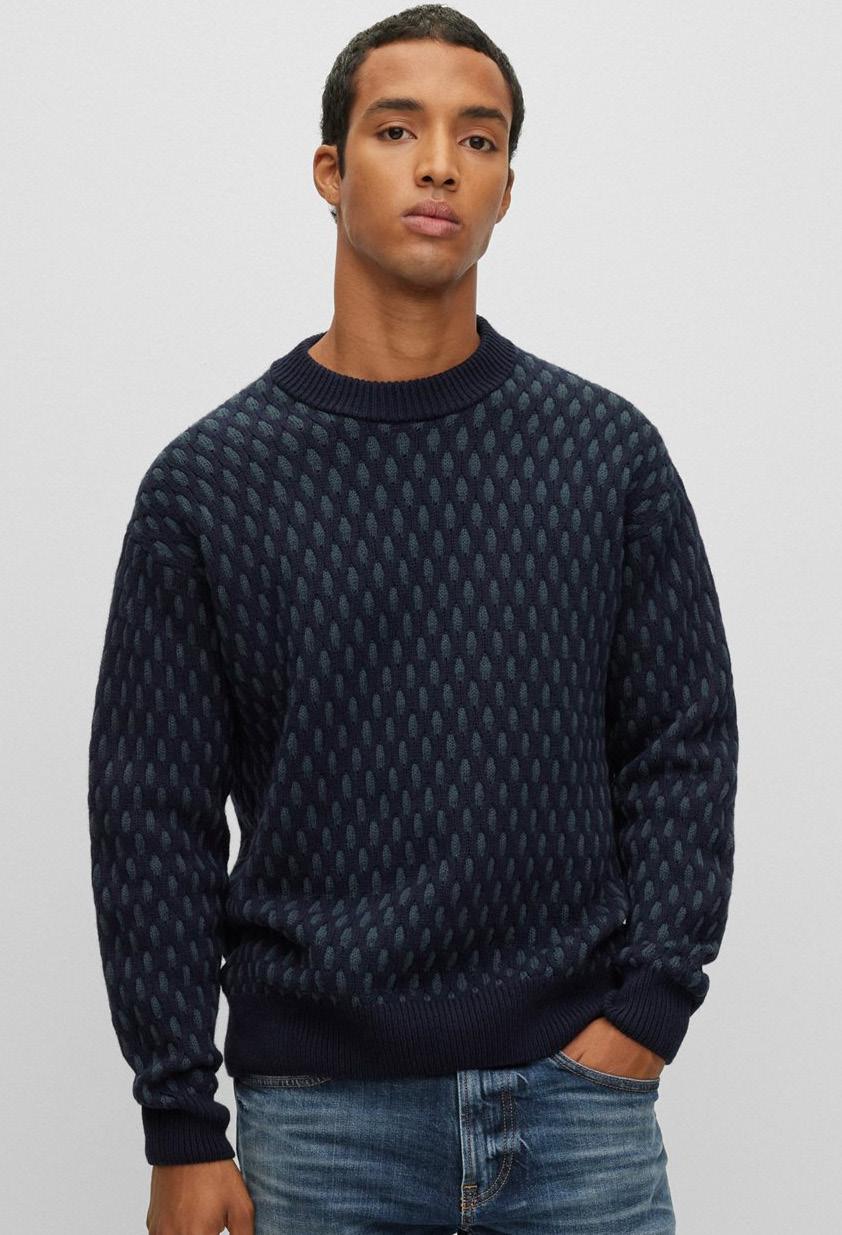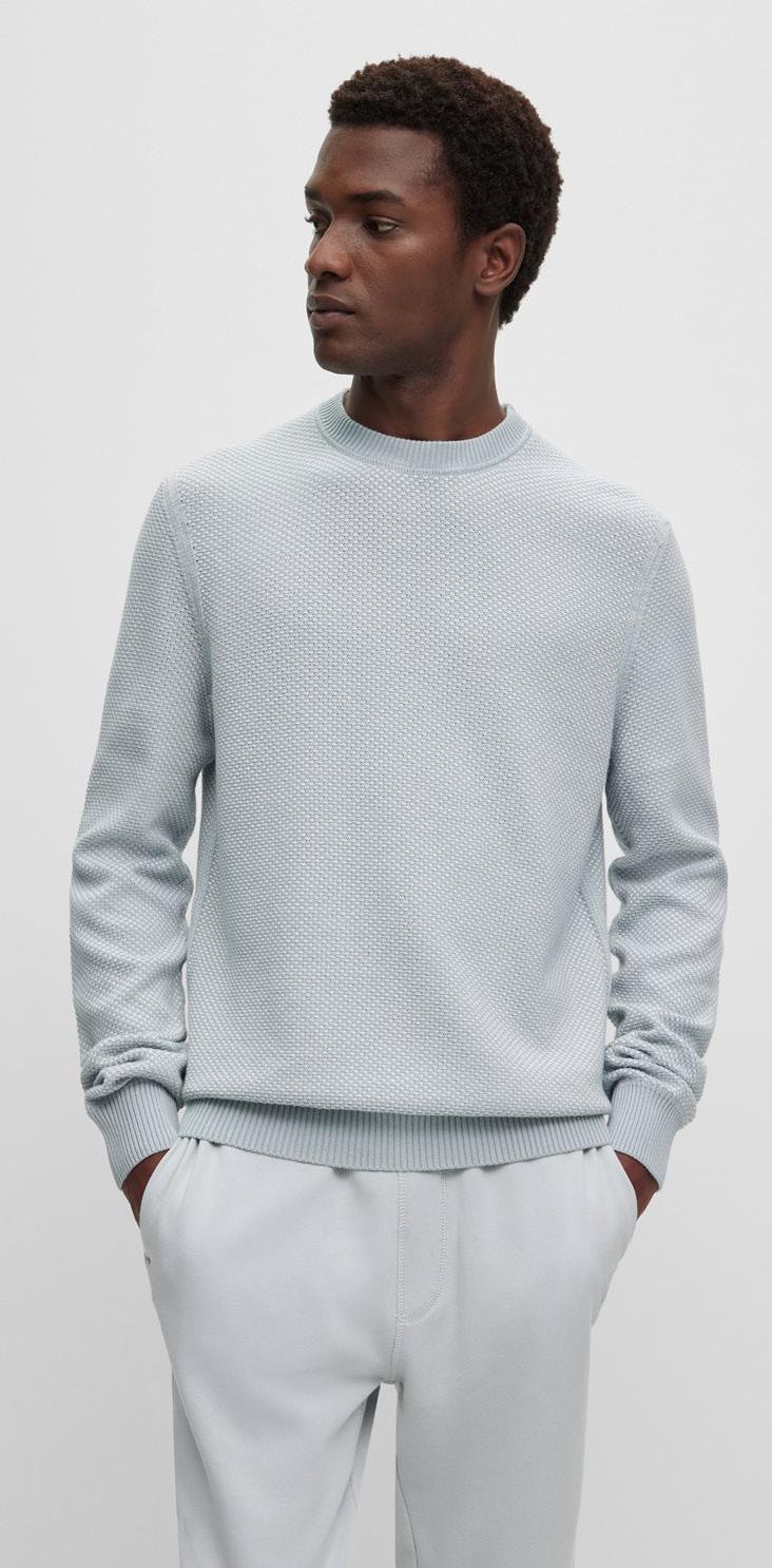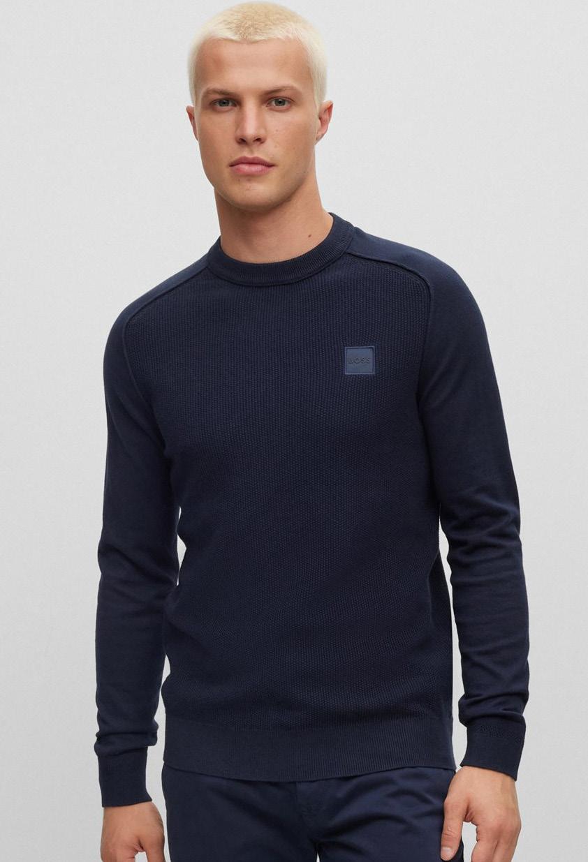 Una distintiva chompa regular fit en piqué de punto con estructura de jacquard y detalles en los hombros franceses.