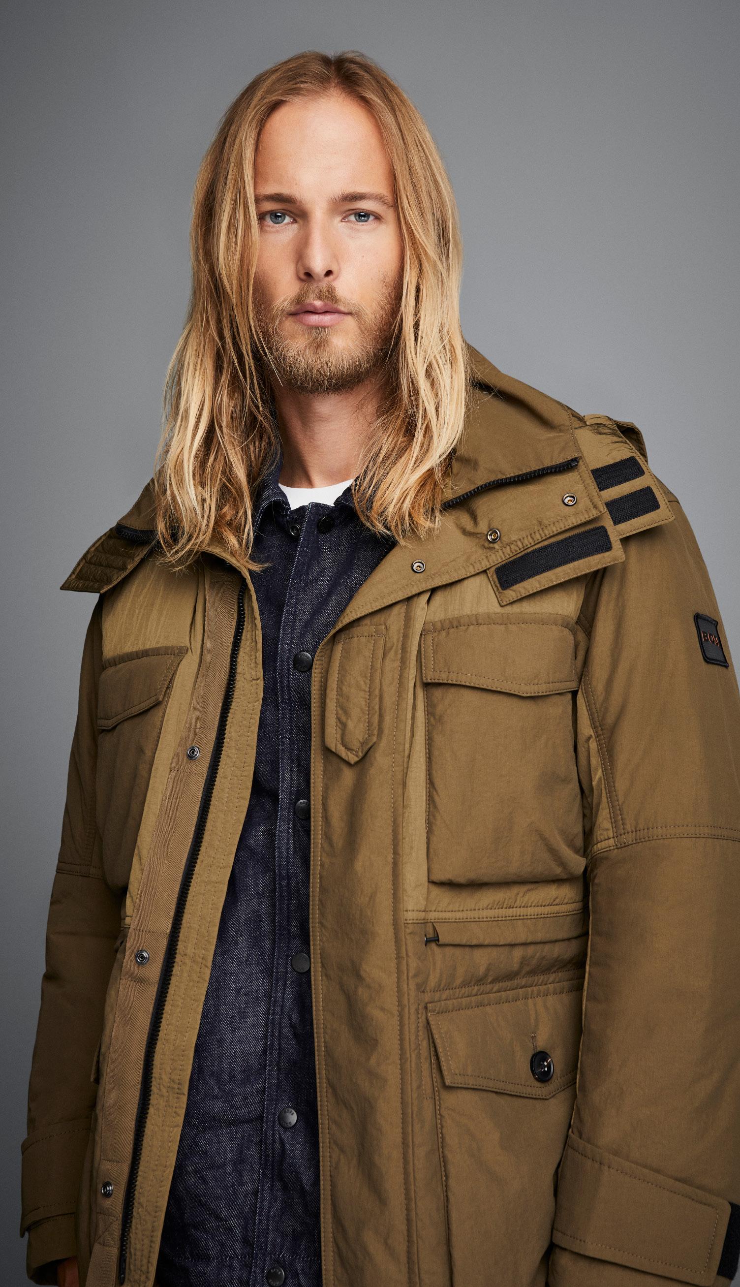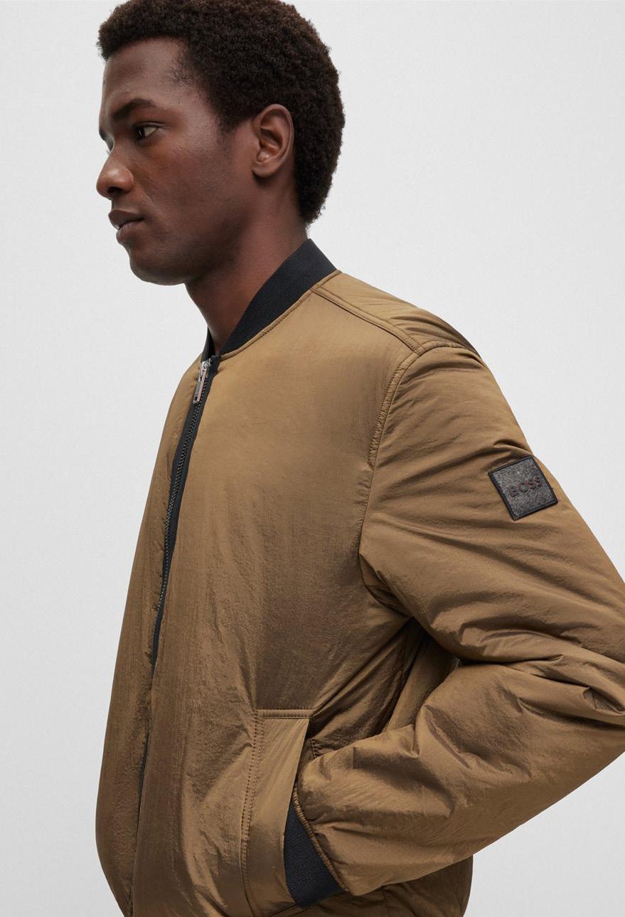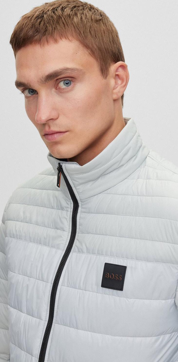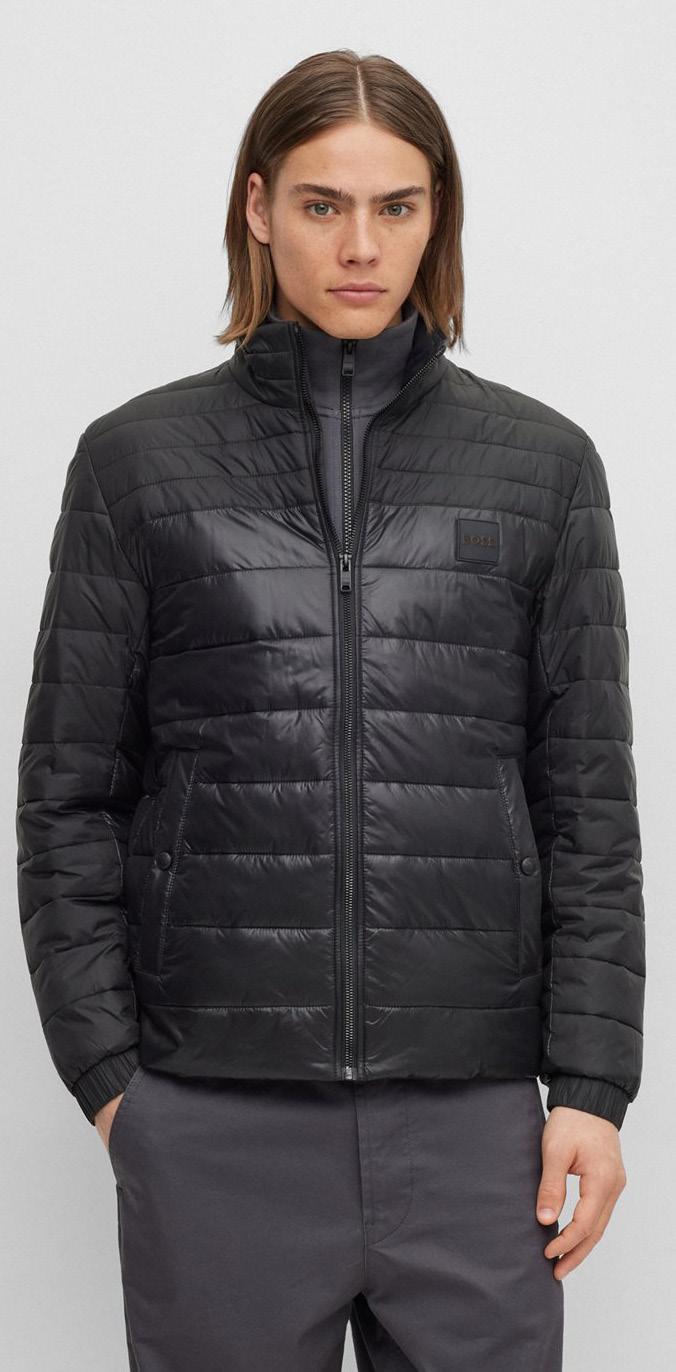 Una casaca con relleno regular fit, diseñada en tejidos mate y brillante repelentes al agua con sensación de peso ligero y parche con logo.