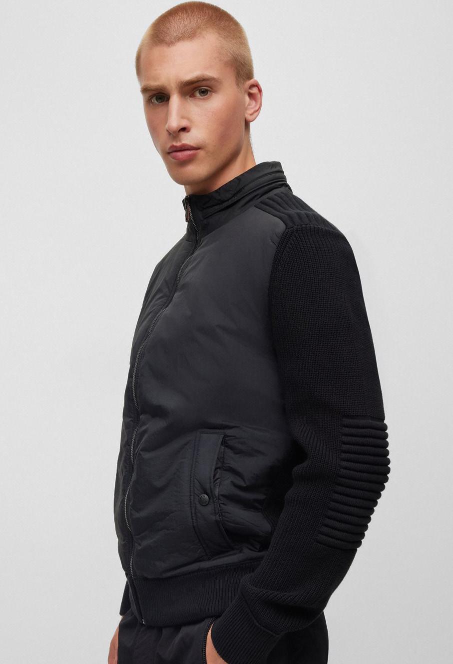 Chompa con cremallera elaborada en mezcla de materiales con parte delantera acolchada, capucha extraíble y logo de fieltro.