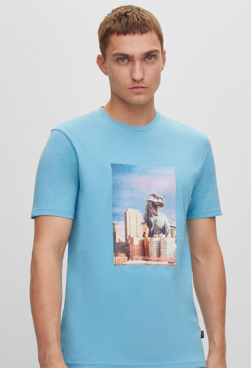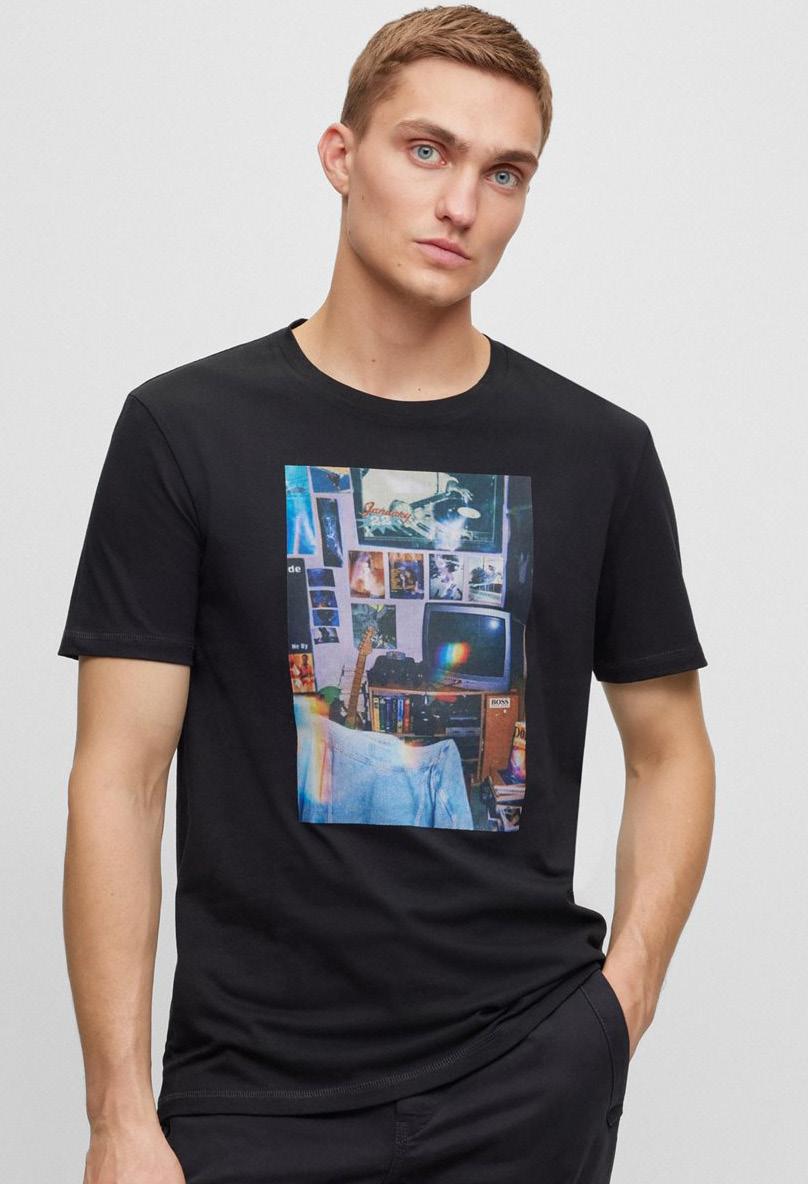 Una camisa regular fit confeccionada en popelín de algodón con estampado digital y botones de goma.