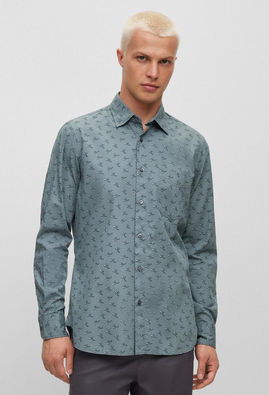 Camisa regular fit en popelín de algodón estampado.