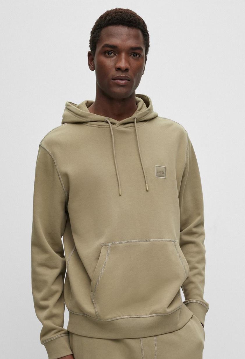 Una sudadera con capucha regular fit elaborada en suave tejido de felpa de rizo con parche de logo tonal en la parte izquierda del pecho.