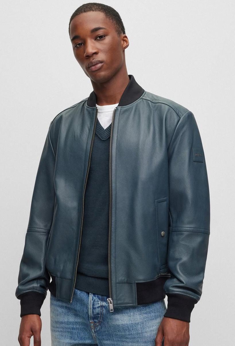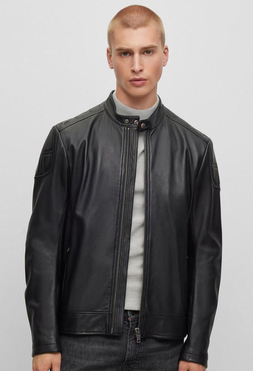 Casaca regular fit en piel con textura de tacto suave.