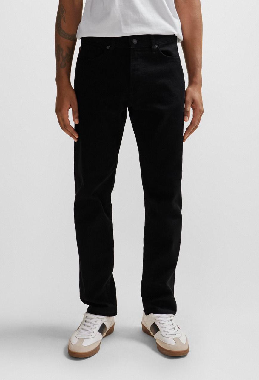 Unos pantalones jean de ajuste recto y tiro medio de denim elástico negro intenso de una comodidad estupenda.