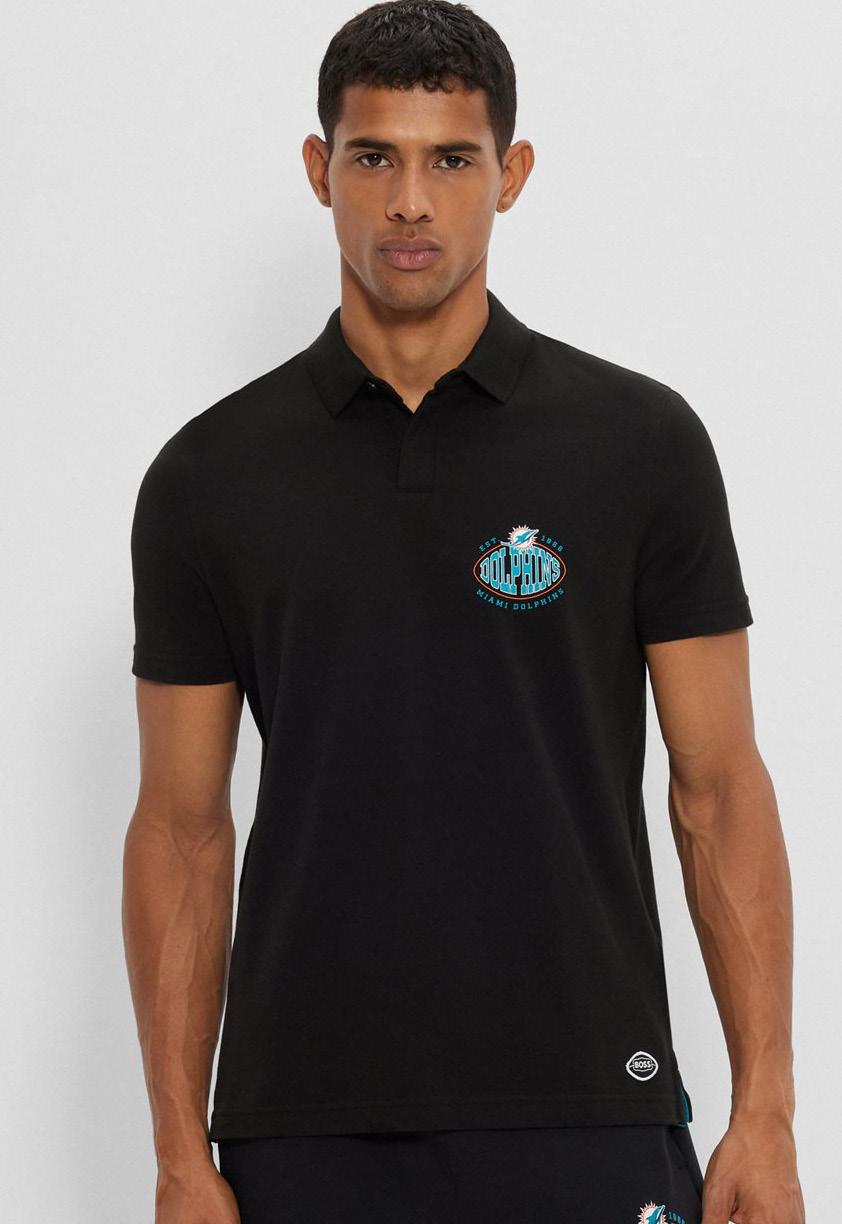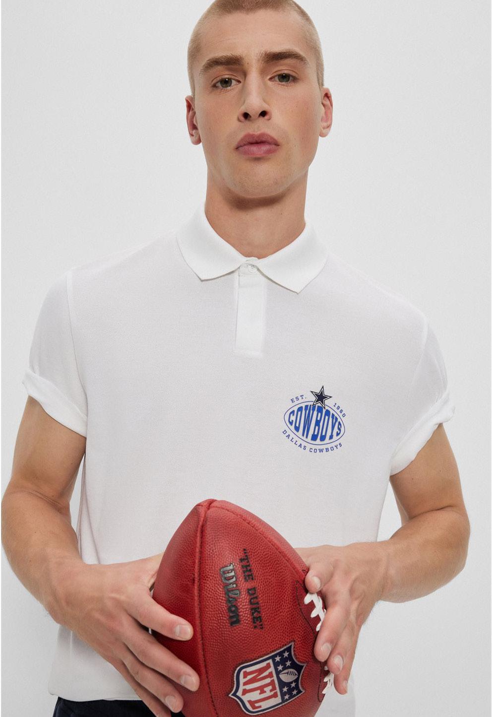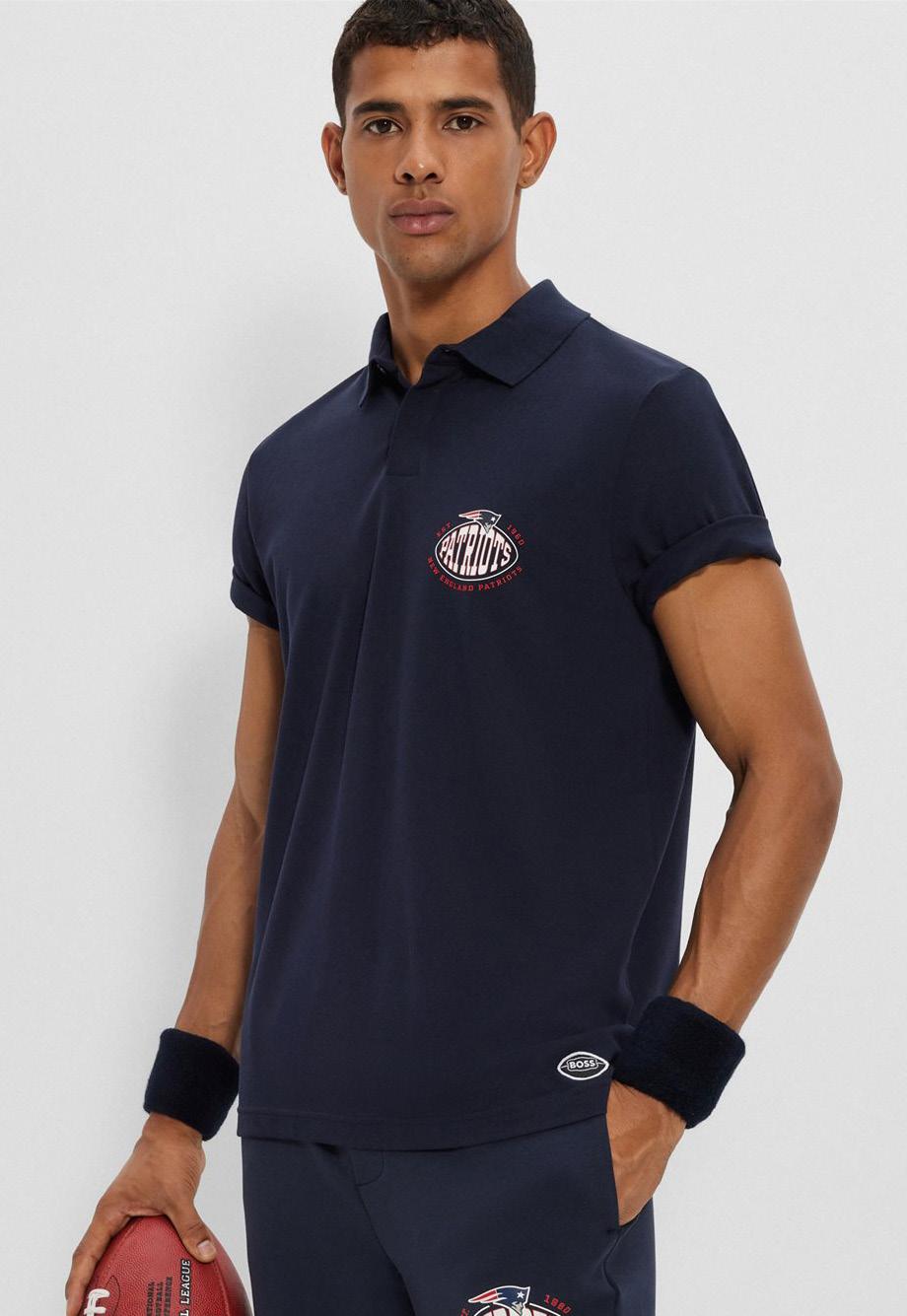 Polo de algodón elástico BOSS x NFL con detalle de la colaboración.