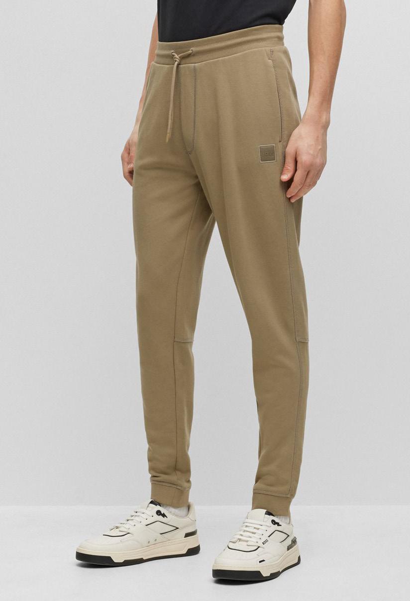 Unos pantalones de chándal regular fit de aire deportivo confeccionados en suave felpa de rizo con bajos ceñidos y parche de logo.