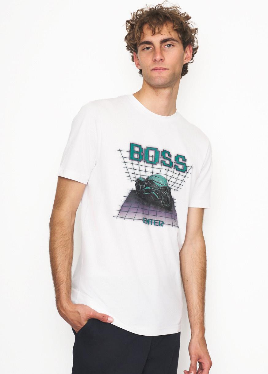 Una camiseta relaxed fit de punto sencillo con ilustración inspirada en el mundo del motociclismo en un estampado mixto.