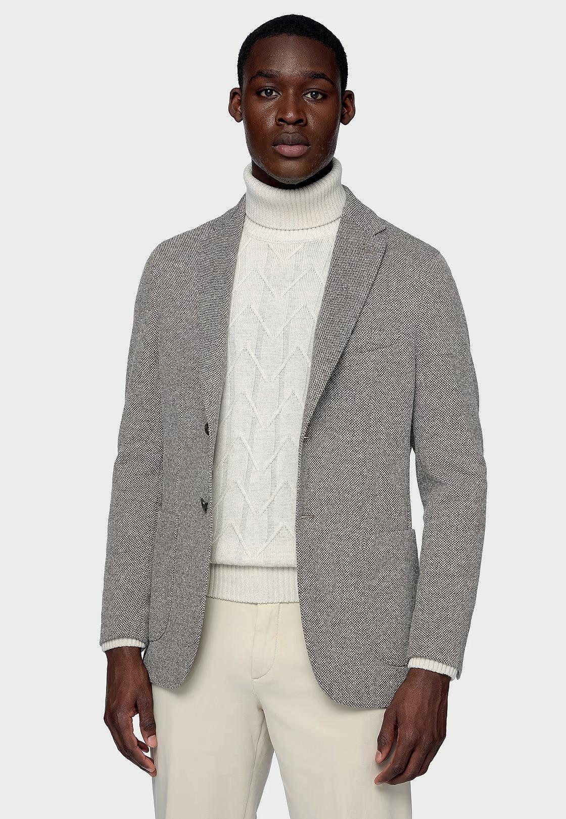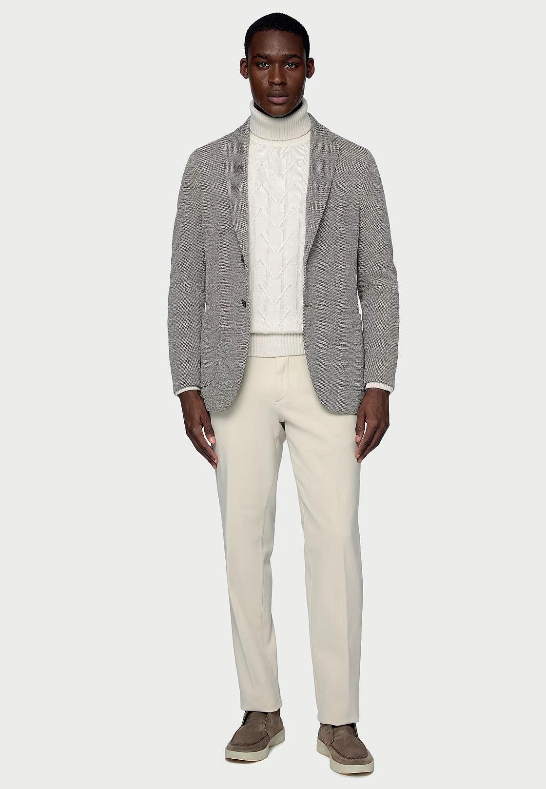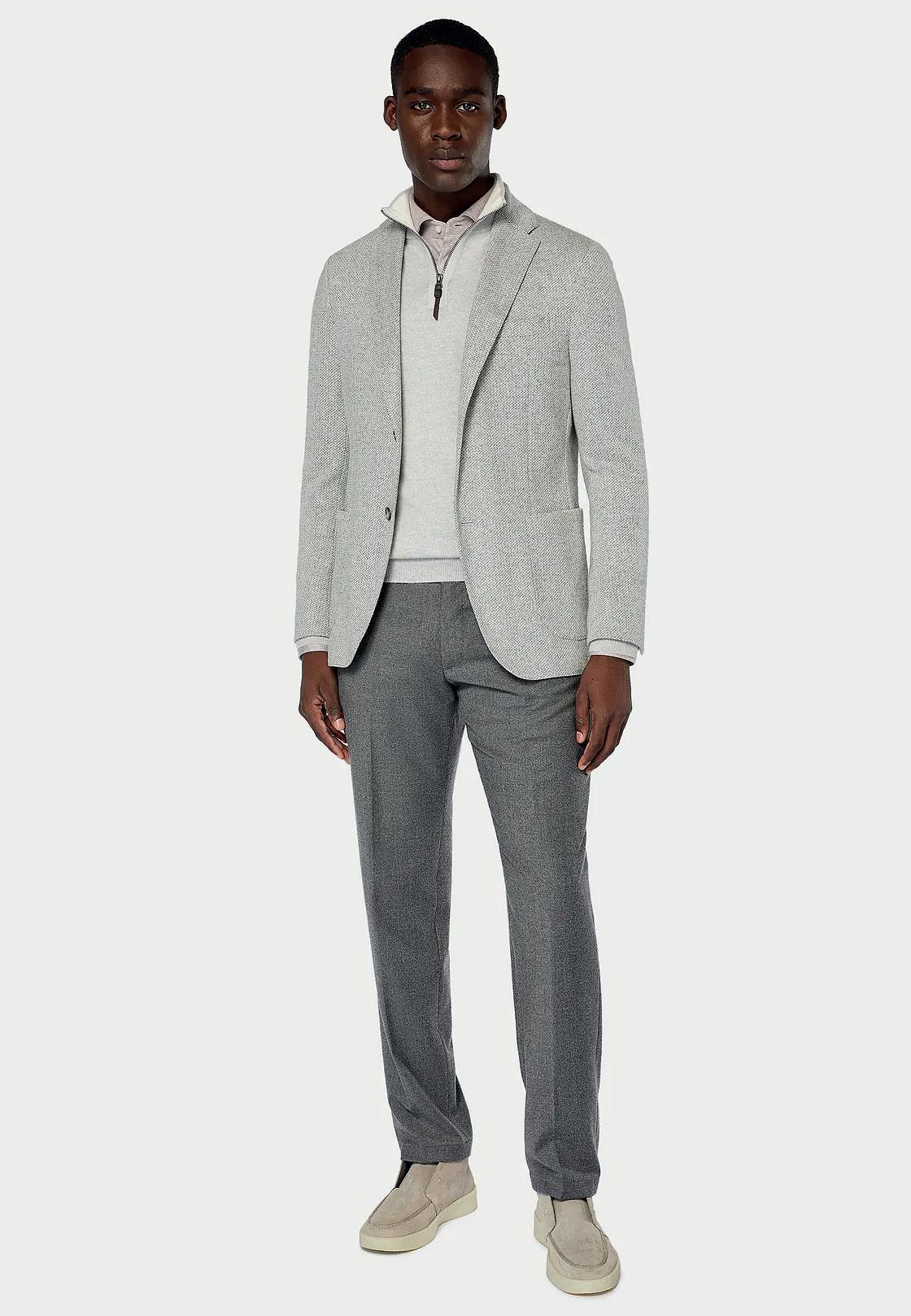 Traje en diseño micro espiga en lana elástica.
