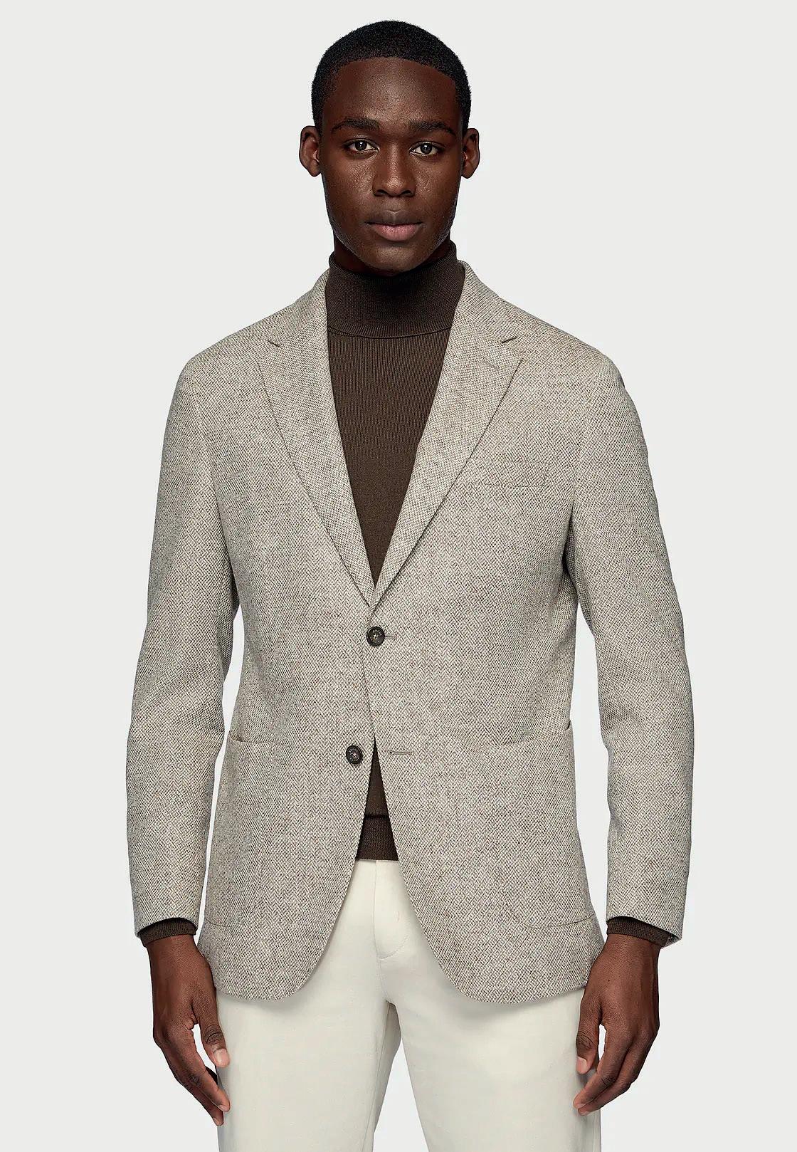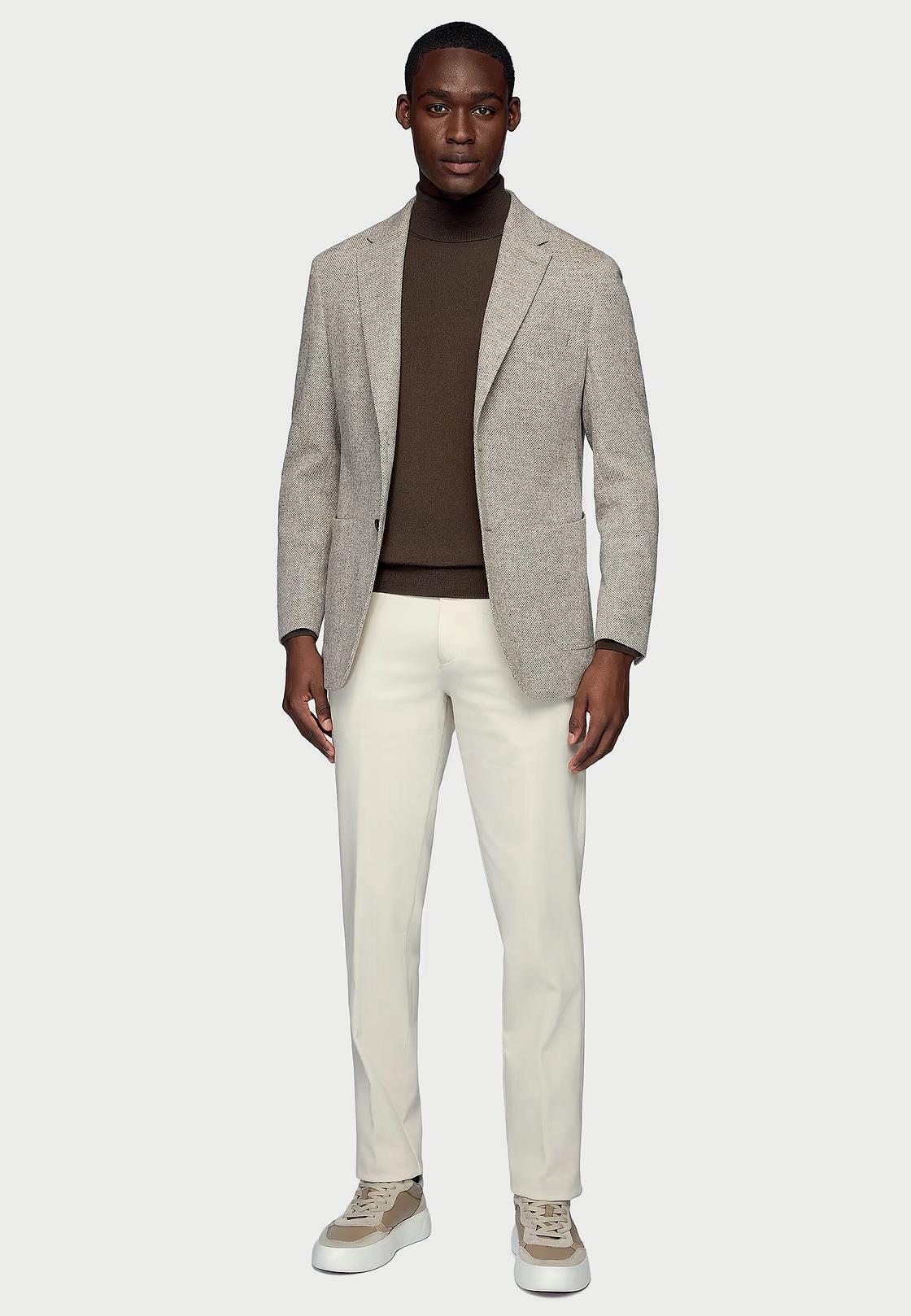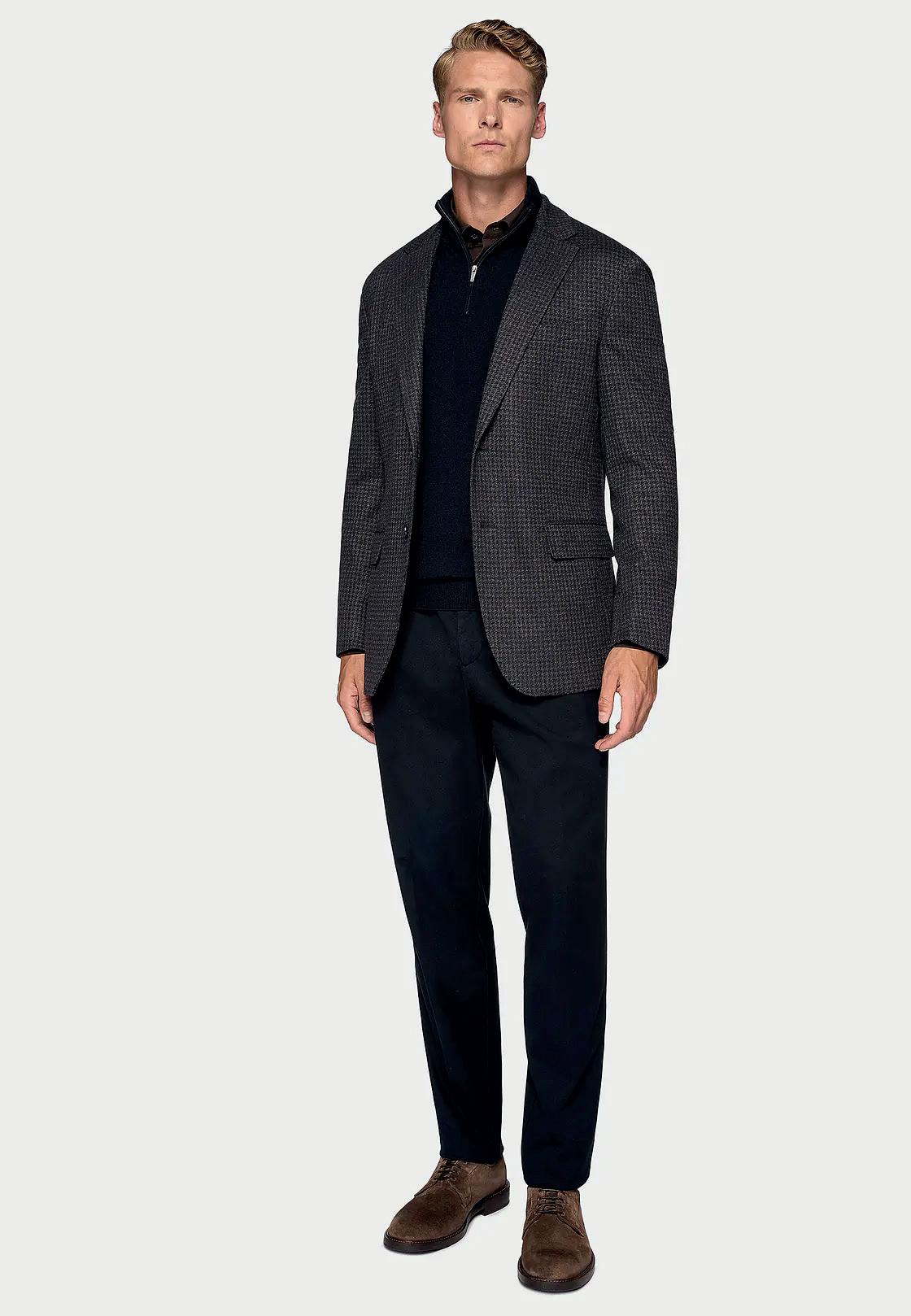 Traje en diseño micro espiga en lana elástica.