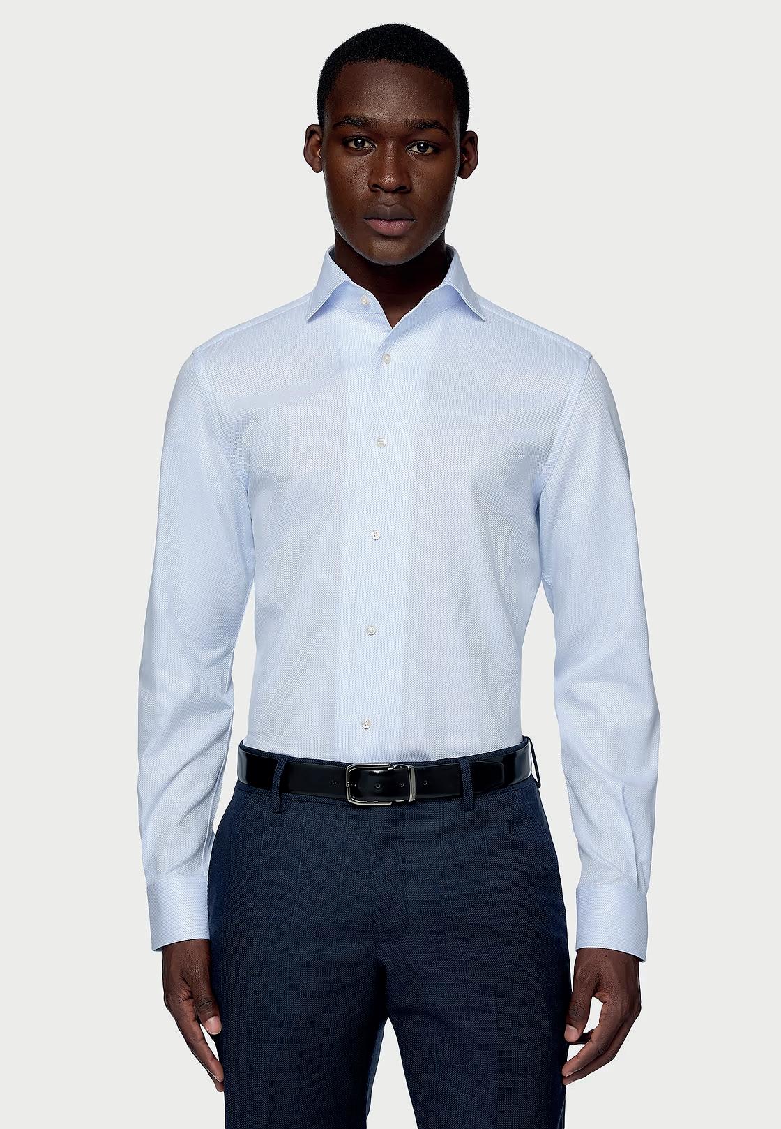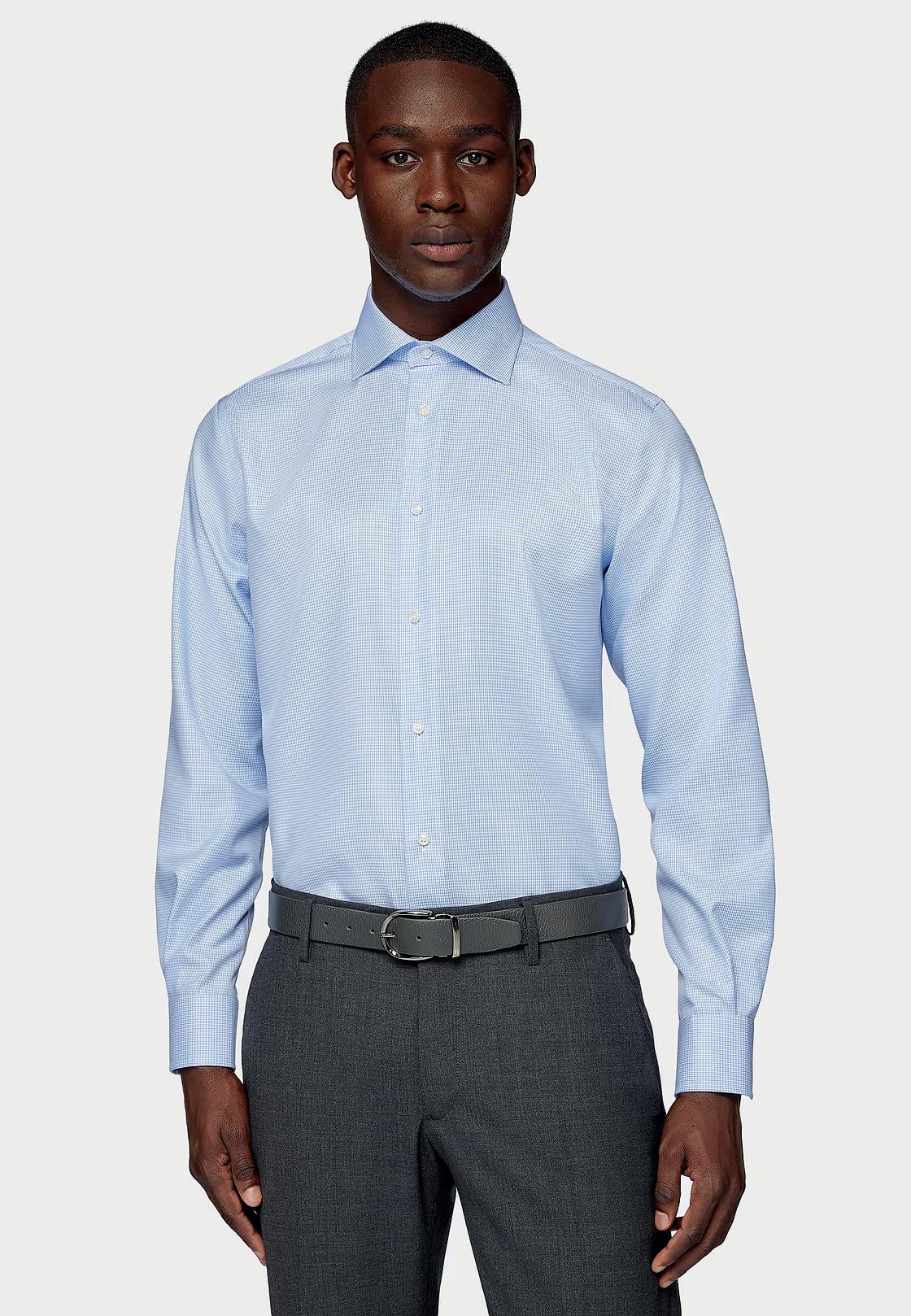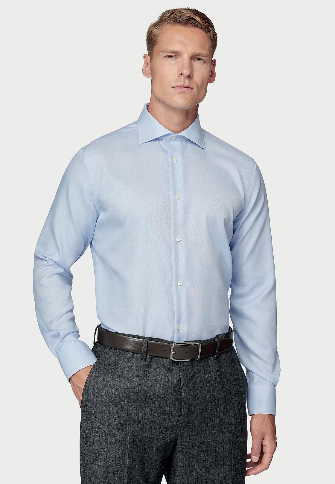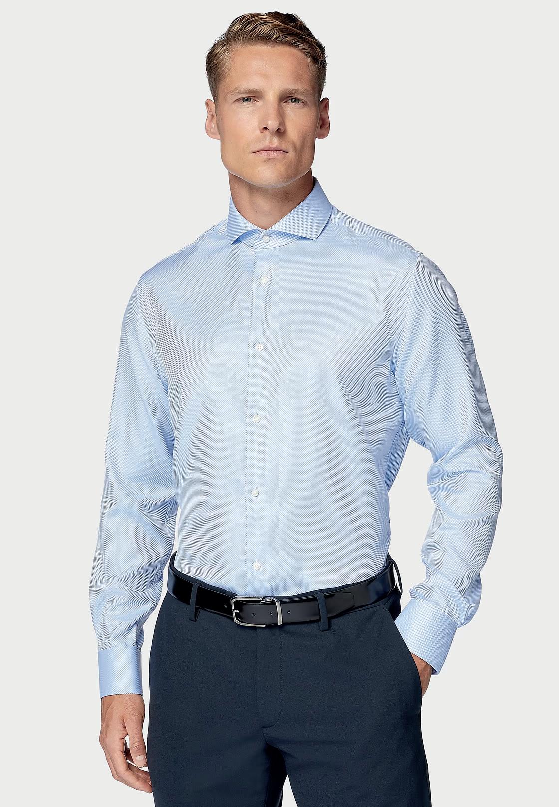 Camisa de algodón dobby. Cuello modelo Windsor. Non Iron.