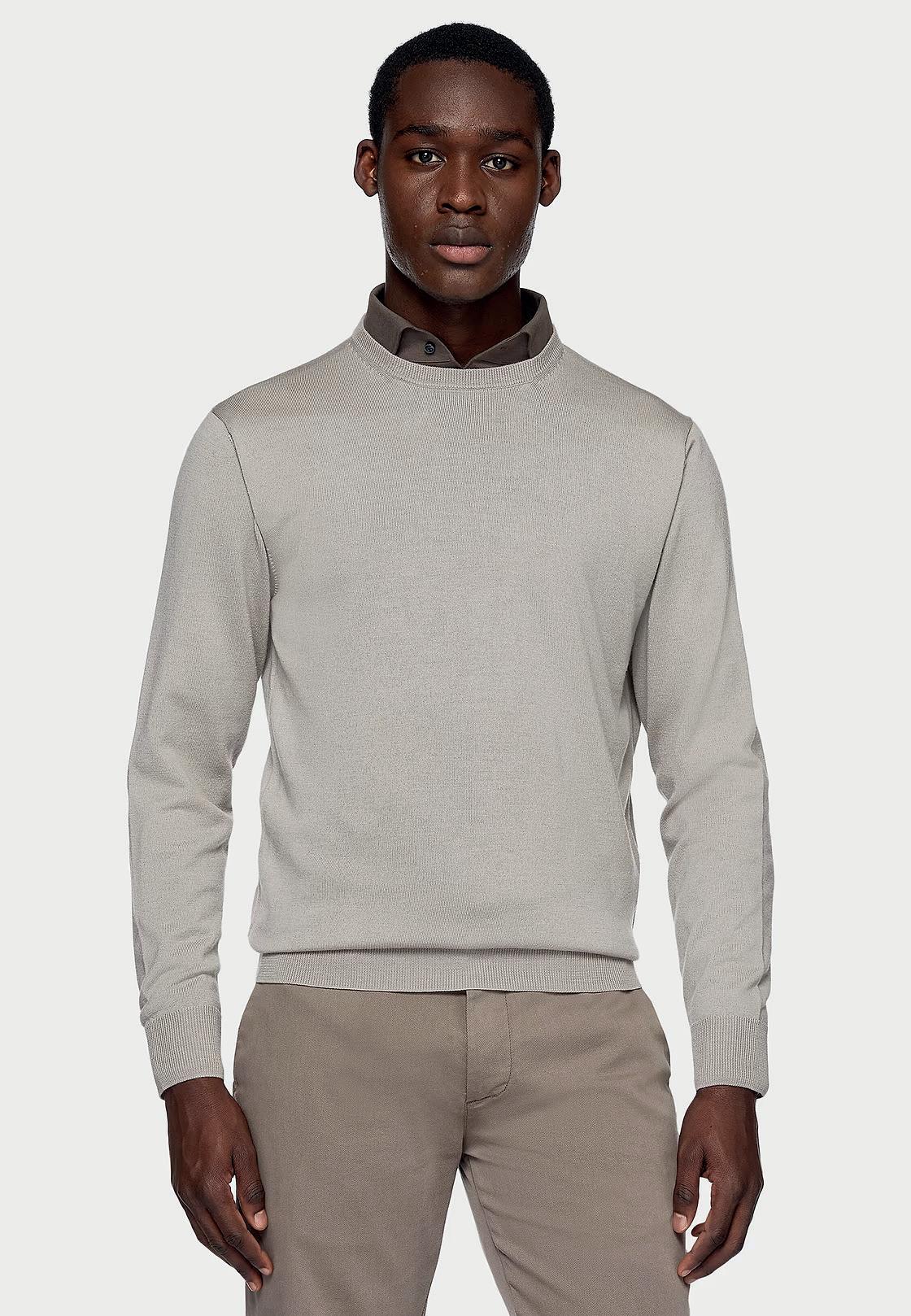 Chompa de cuello redondo de lana Merino.