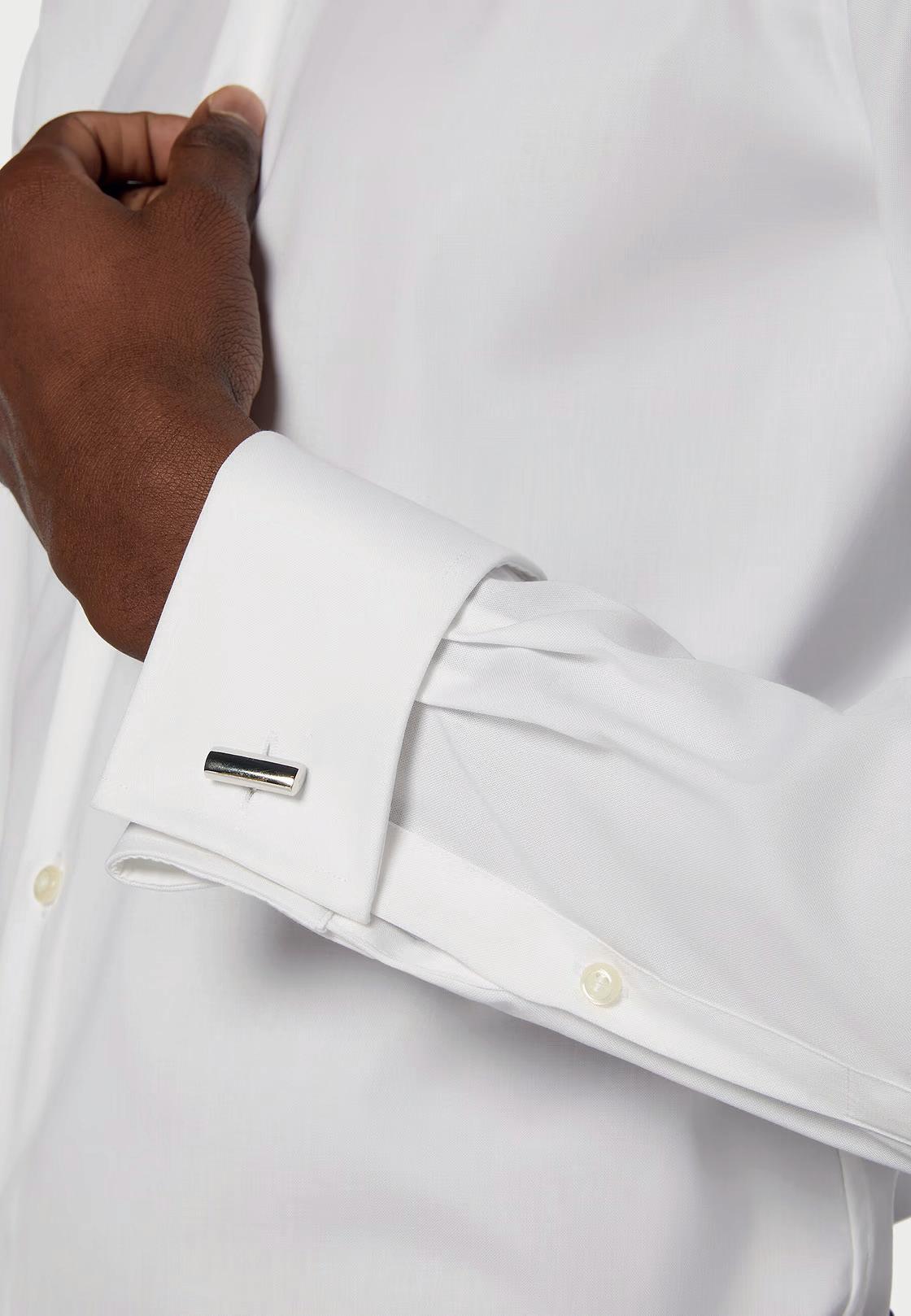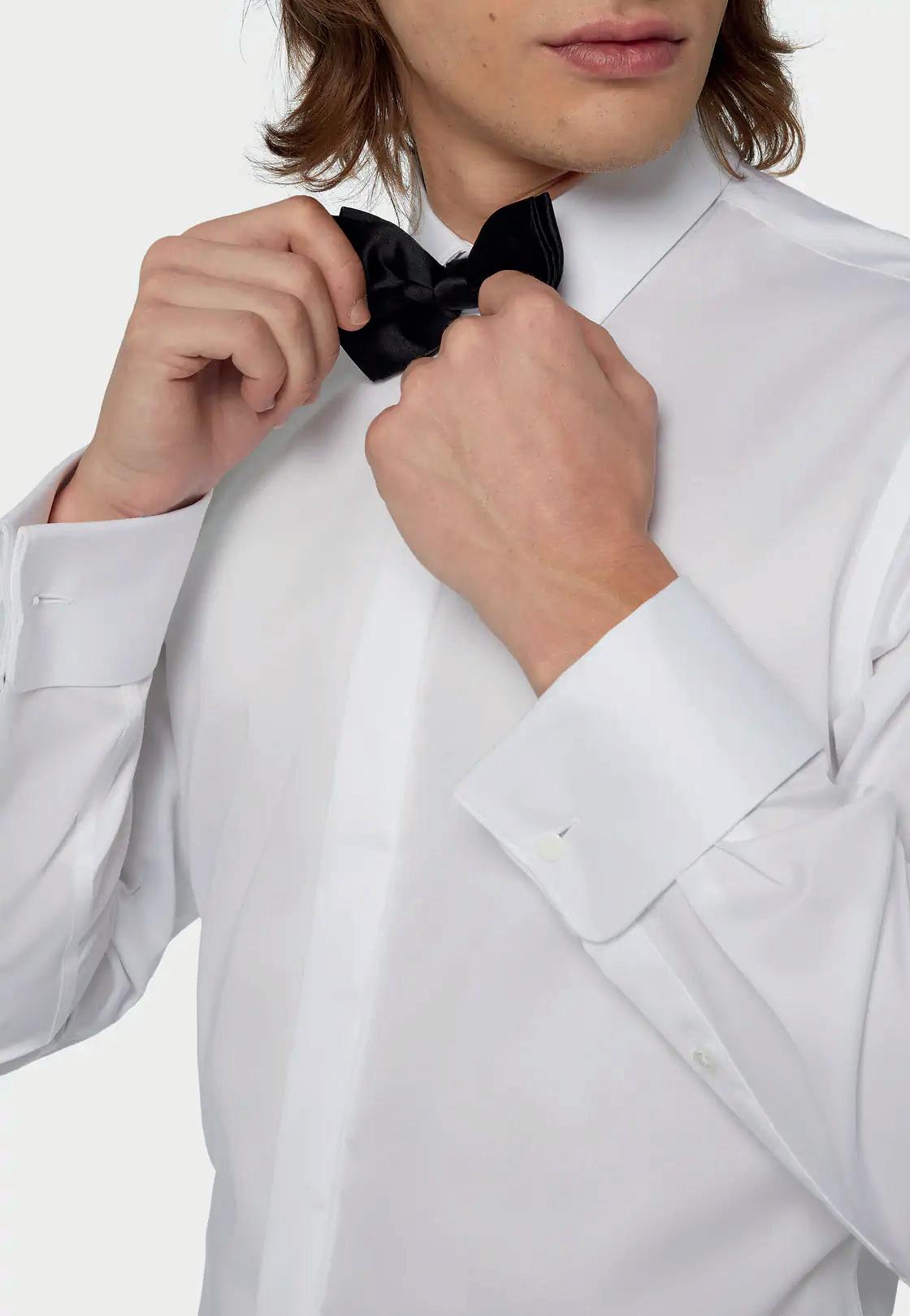 Camisa esmoquin de satén de algodón de corte Slim fit.