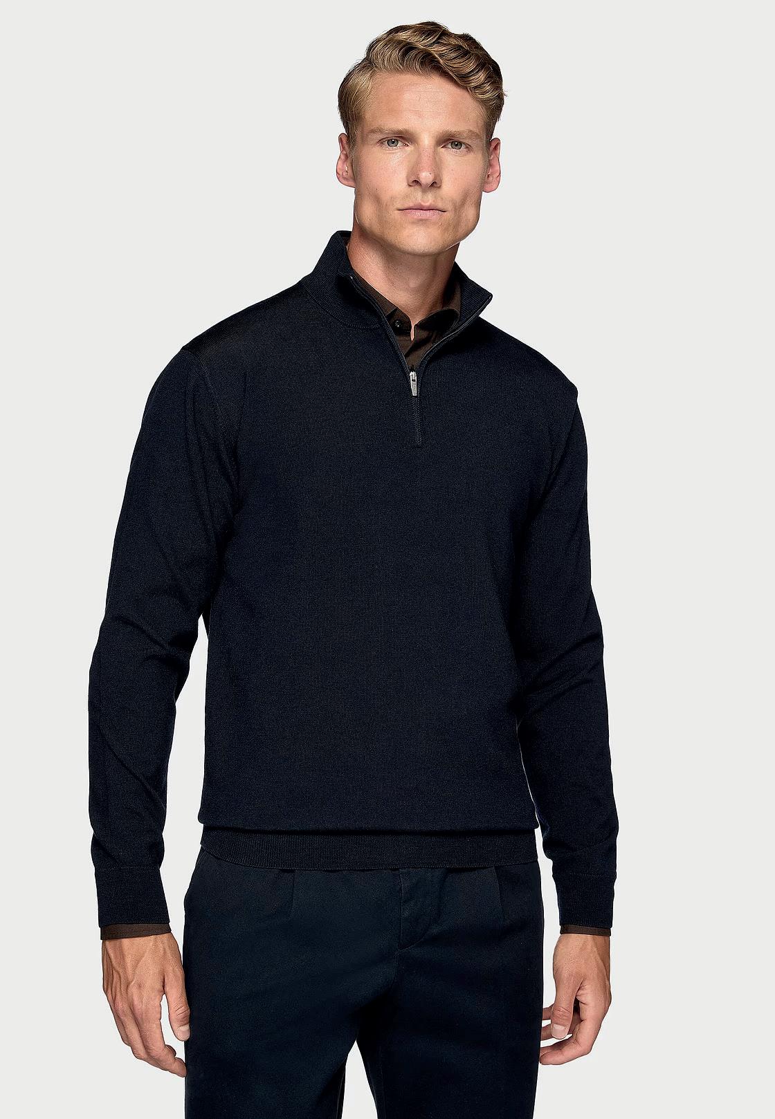 Chompa de lana Merino con media cremallera