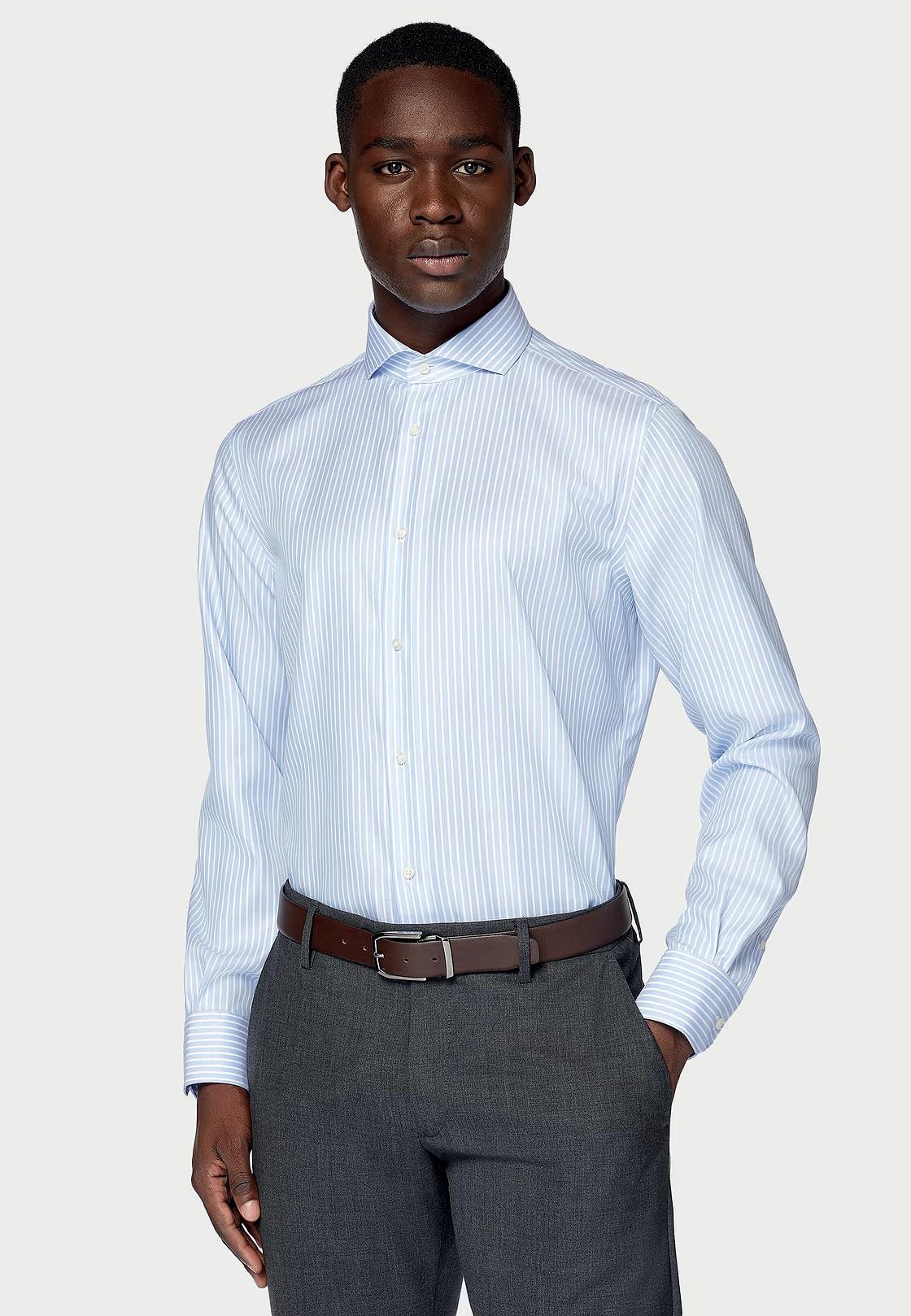 Camisa de sarga de algodón a rayas. Cuello modelo Windsor. Non Iron.
