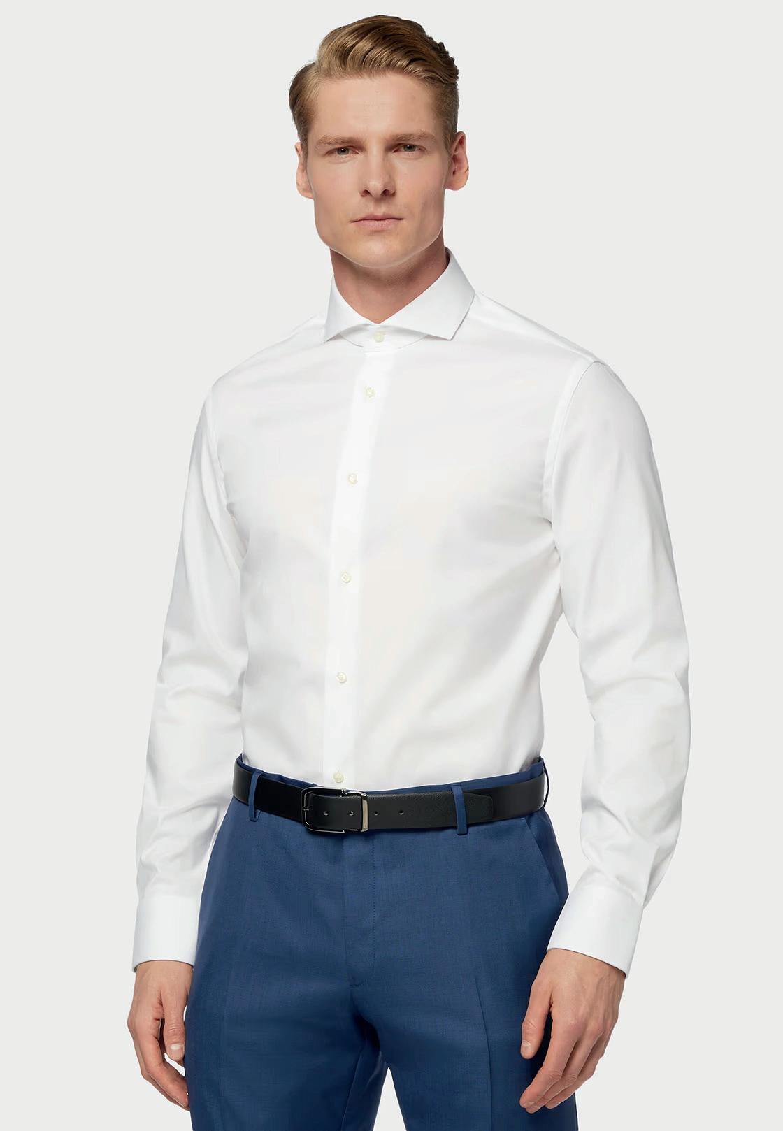 Camisa de algodón de corte Slim fit. Cuello Windsor.