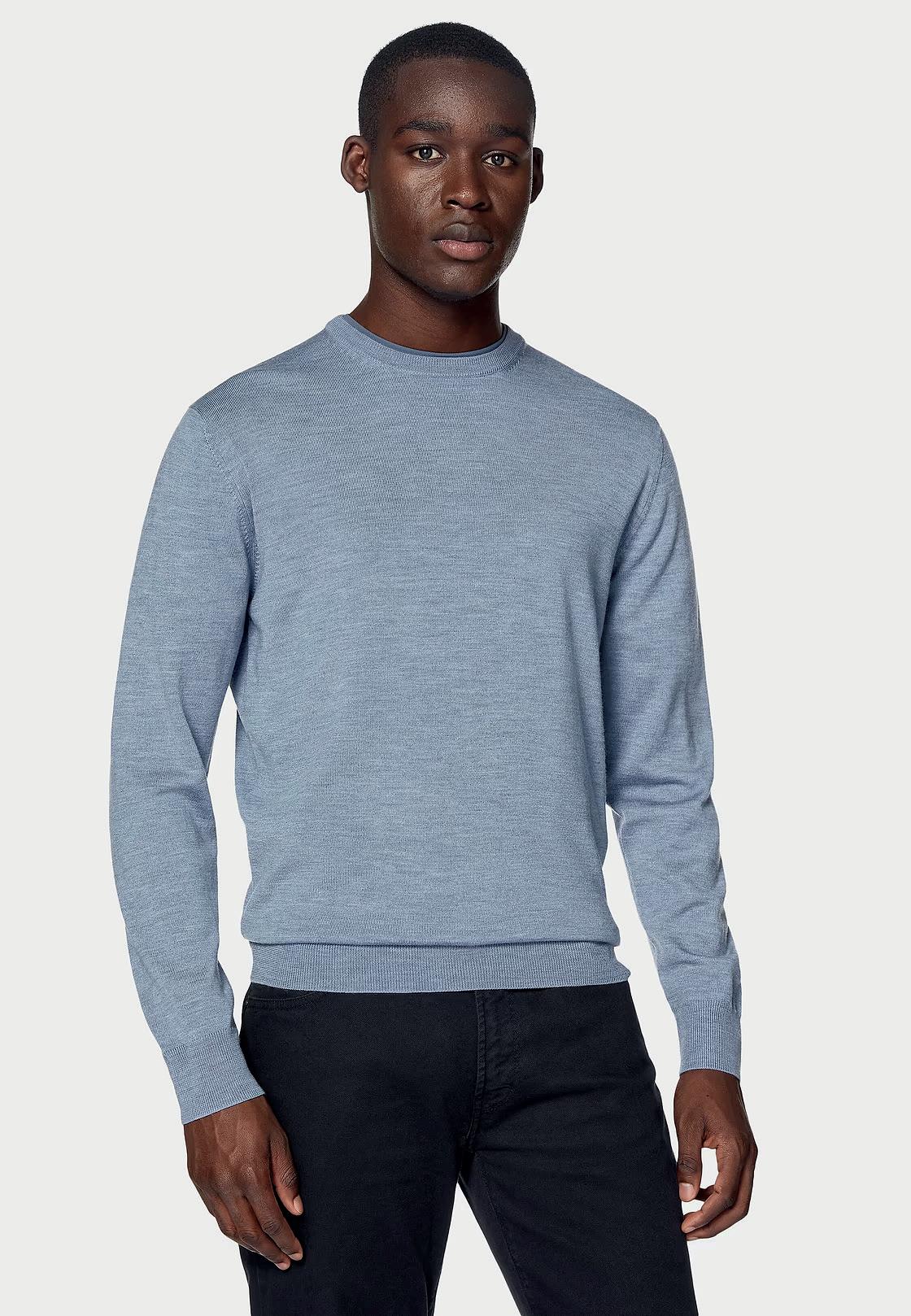 Chompa de cuello redondo en lana Merino.