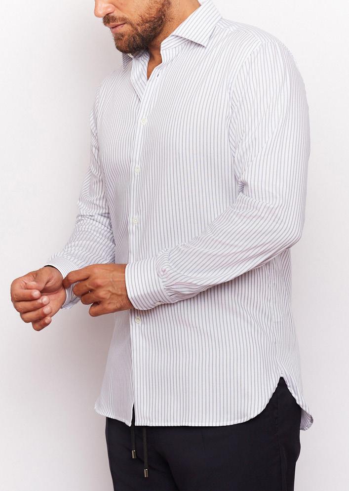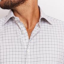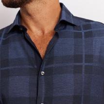 Polo de manga corta de algodón mercerizado con procesamiento de dos tonos en Jacquard, cuello y puños en color contrastante.