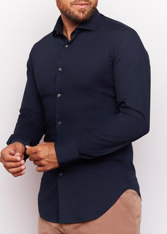 Cálido, ligero y elegante, el polo de manga larga hecho a partir de tencel y lana.