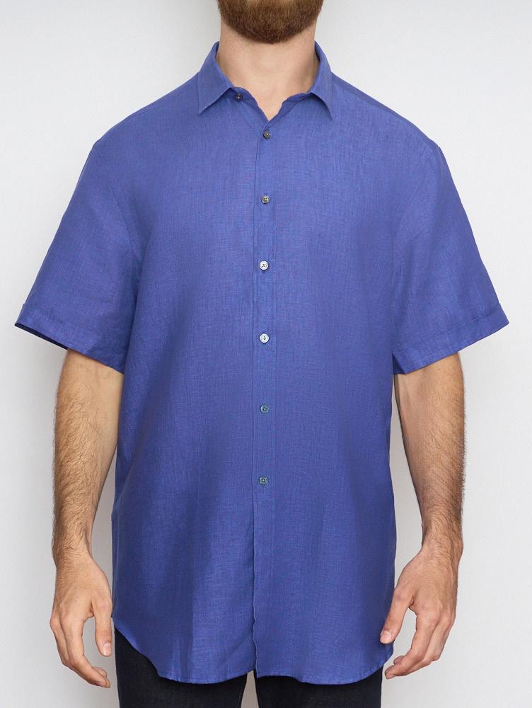 Una versátil camisa fácil de combinar. Esta camisa de mangas cortas se ha elaborado en lino para lucir un diseño impecable.