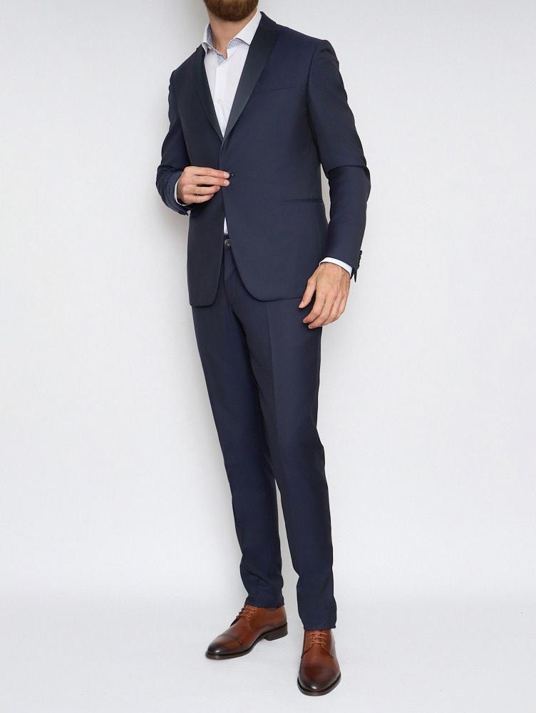 El esmoquin perfecto para vestir una ocasión especial. Presentado con nuestro icónico corte Vicenza, viene en lana lisa, con un solo botón completamente forrado.